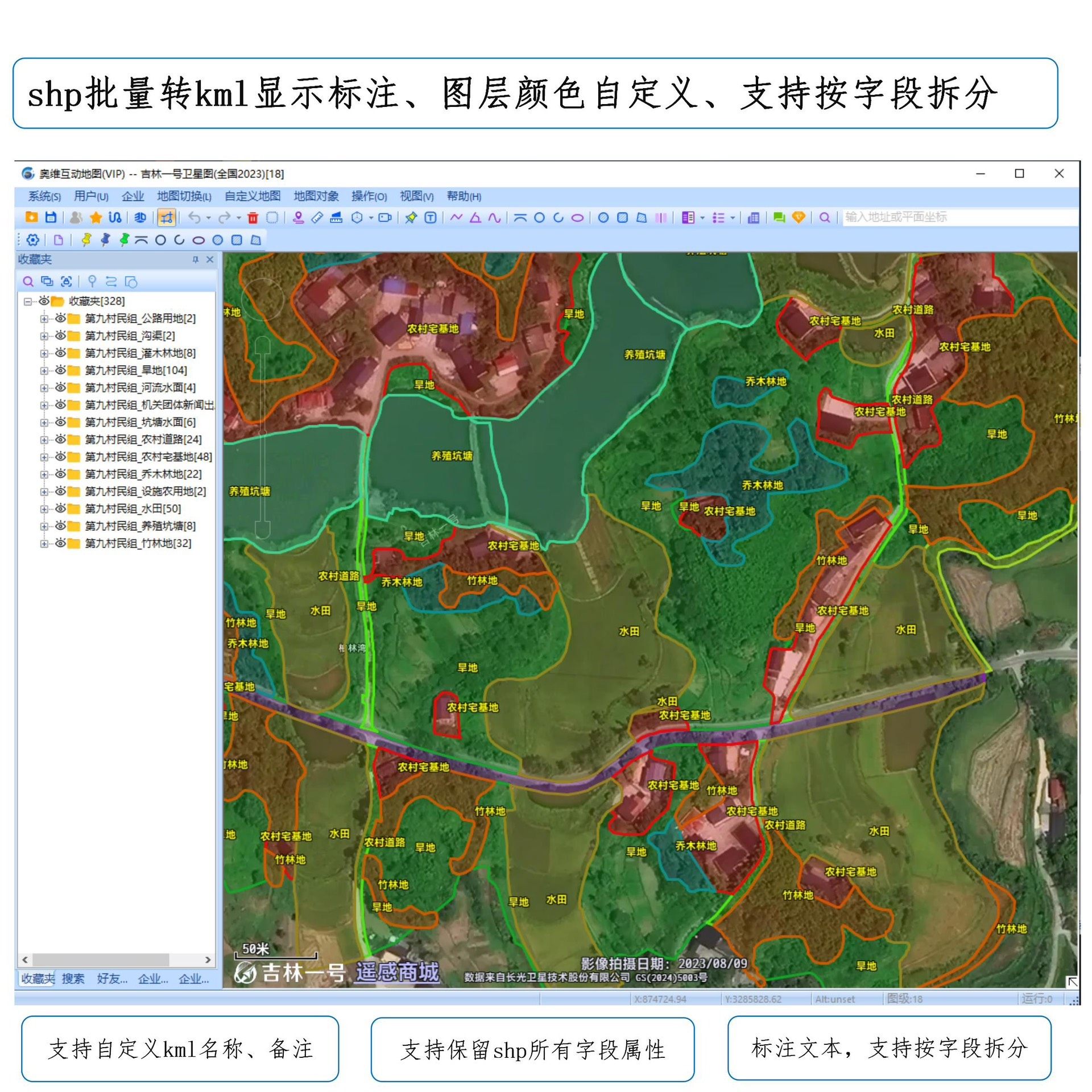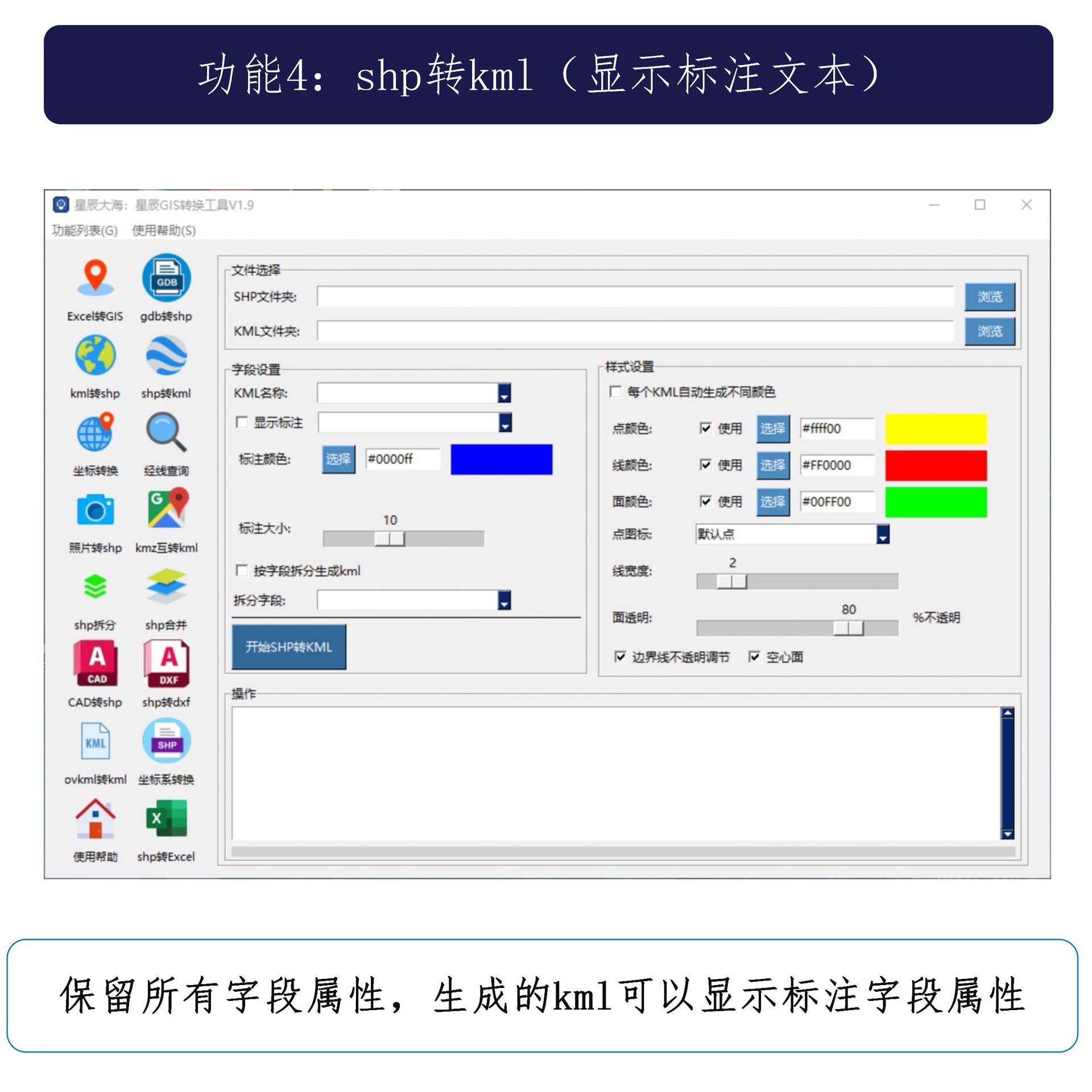 KML/KMZ转SHP时自动保留所有原始属性字段;SHP转KML则支持标注文本显示,确保在Google Earth等平台中可视化效果清晰直观。