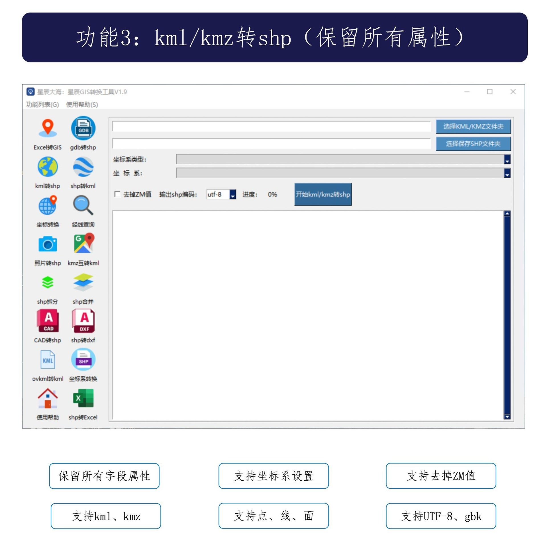 支持KML与KMZ格式之间的大批量相互转换,处理速度快,稳定性强,适合海量数据预处理。