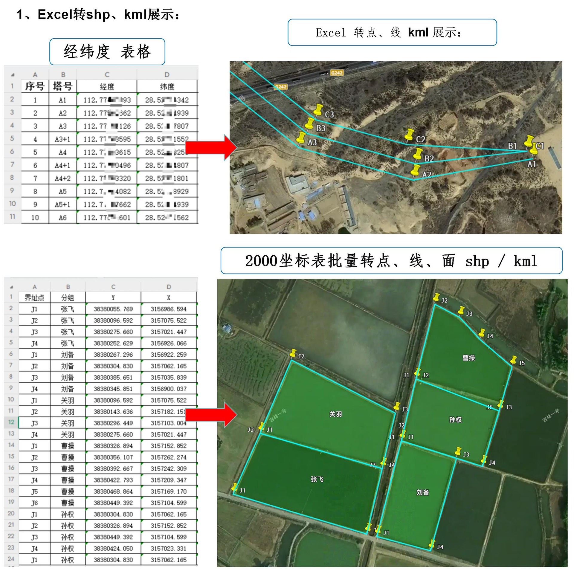 本工具可实现Excel或文本文件中的坐标数据一键转换为SHP、KML、KMZ及CAD(DWG)格式,输出类型包括点、线、面和注记,适用于各类空间数据建模场景,确保数据结构完整、属性不丢失。
