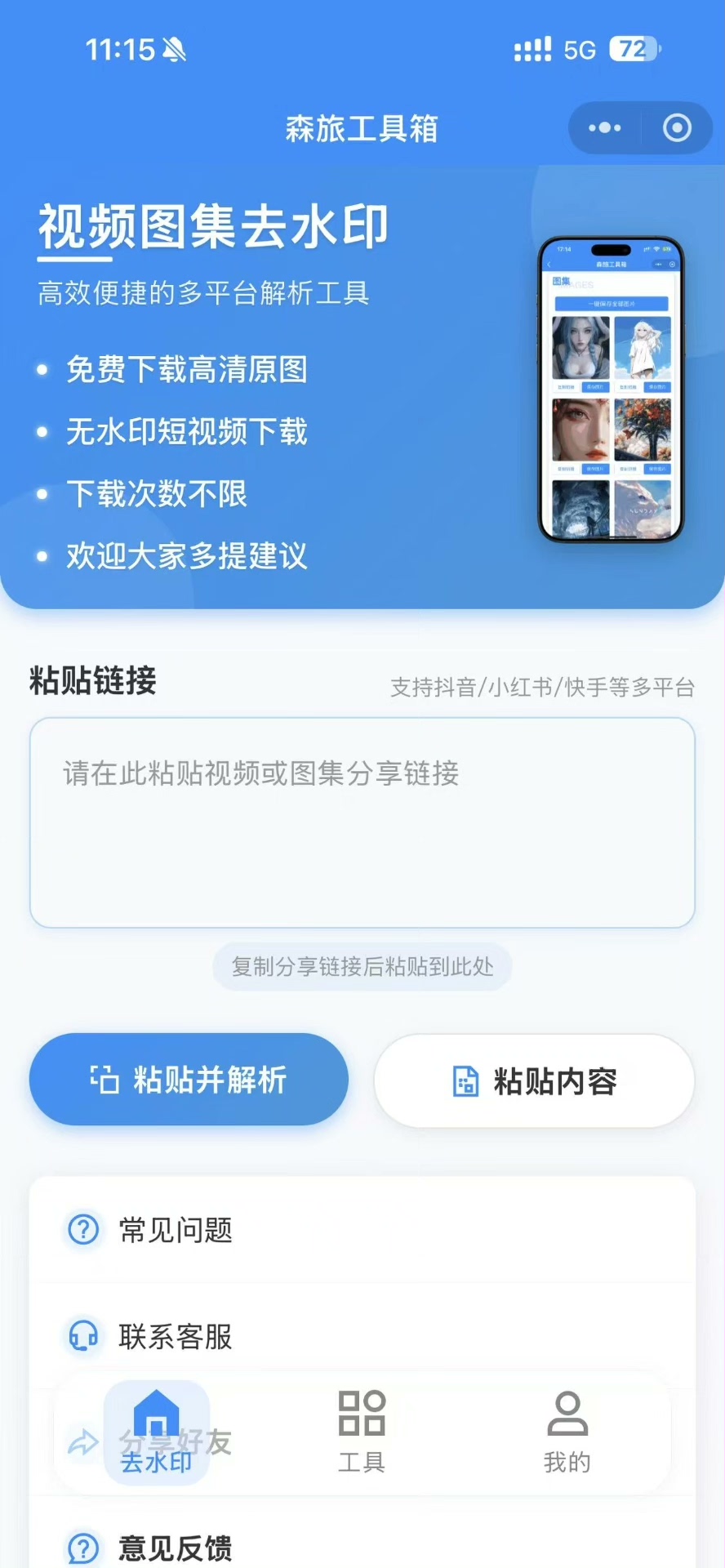 该源码完全开放,无需服务器即可部署,适合个人开发者、技术新手快速搭建专属去水印工具平台。