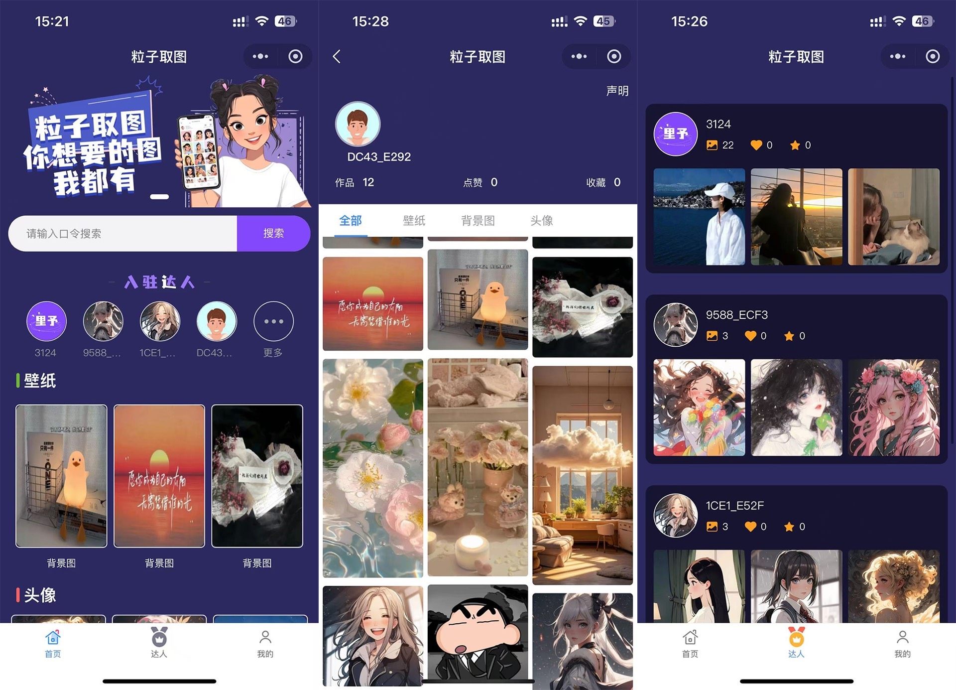 本款小程序源码专为内容创作者与运营者打造,集成了高清壁纸、个性头像、热门表情包以及便捷的口令取图功能,满足多样化用户需求。