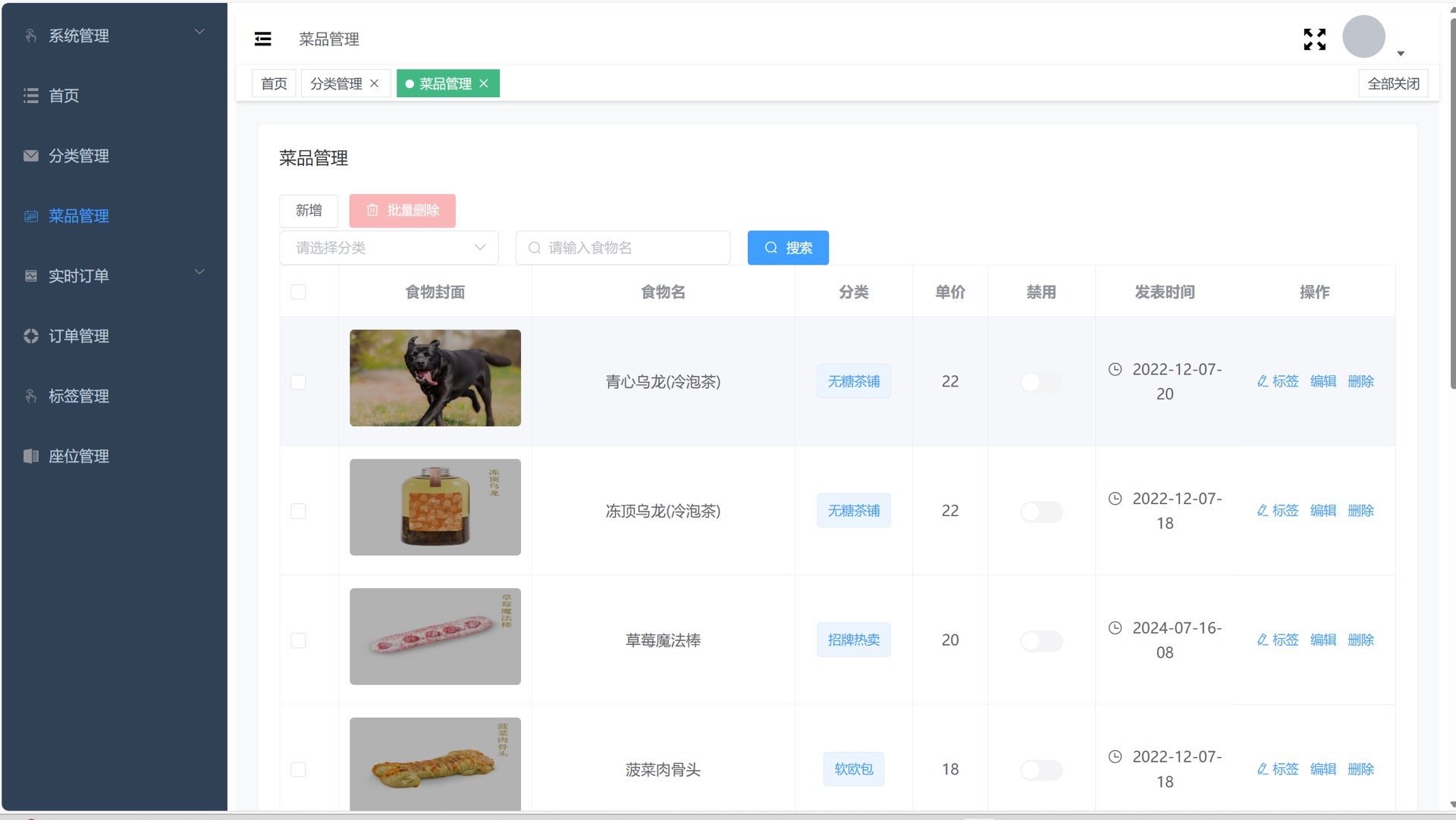 系统集成了用户点餐、订单生成、在线支付模拟、菜单结构管理、菜品信息维护、分类体系设置、标签管理、订单追踪、账号权限分配等多项功能模块,满足从点餐到后台运营的全链路需求,助力商家实现高效管理。