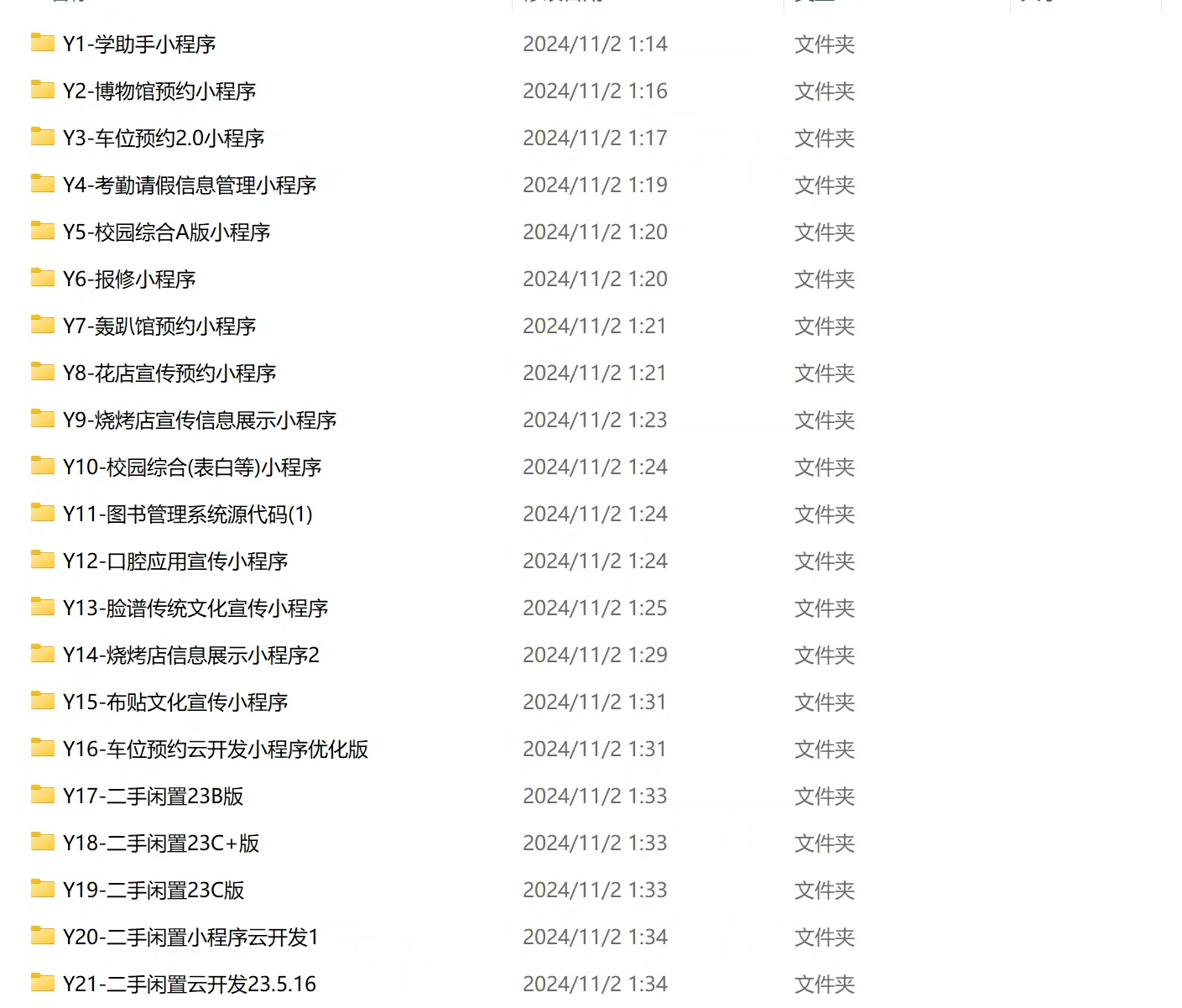 所有小程序源码均开放完整代码结构,便于开发者进行二次开发。