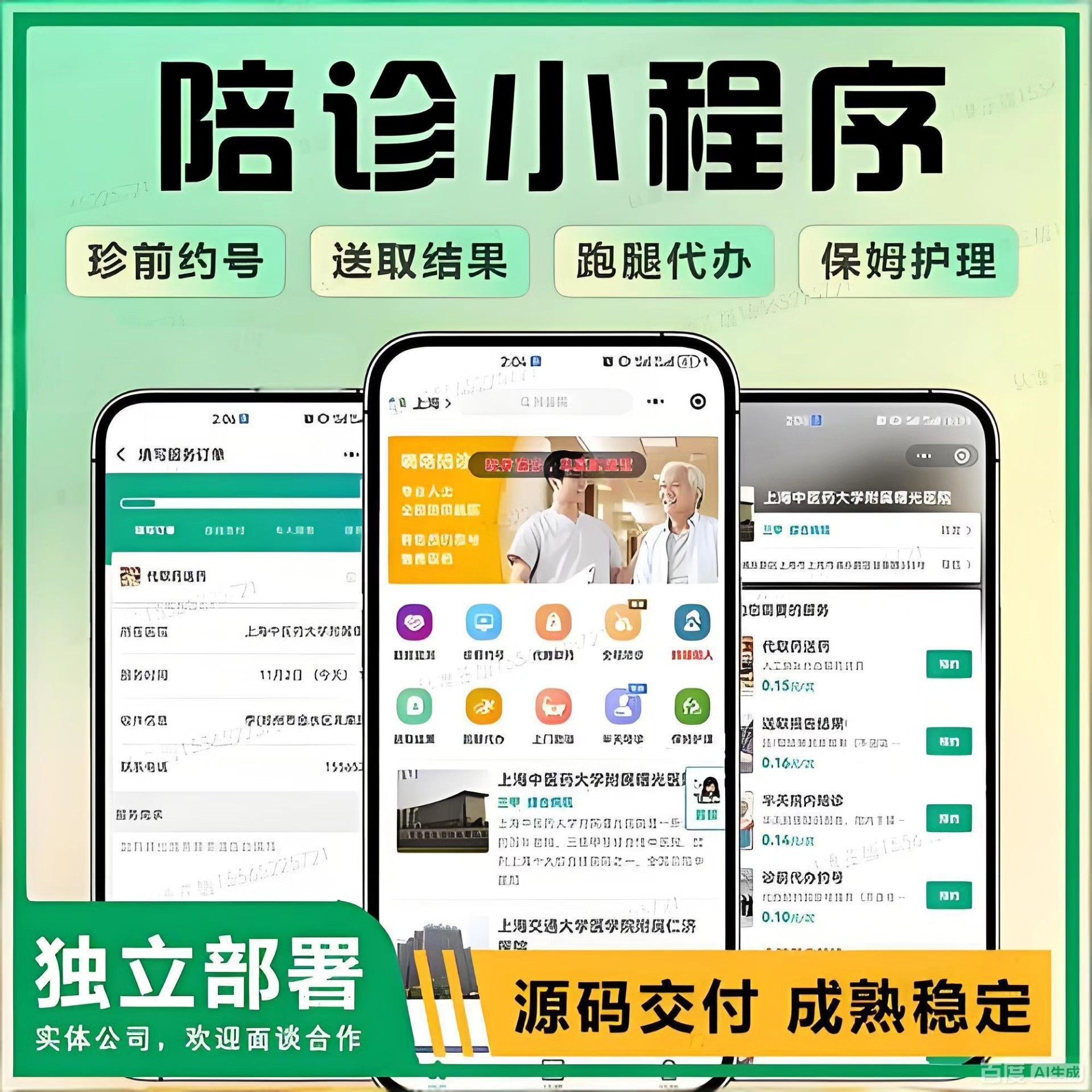 程序功能全面,支持预约挂号、陪诊服务跟进、结果送达等核心流程,适用于医疗机构、健康服务平台和个人创业者。