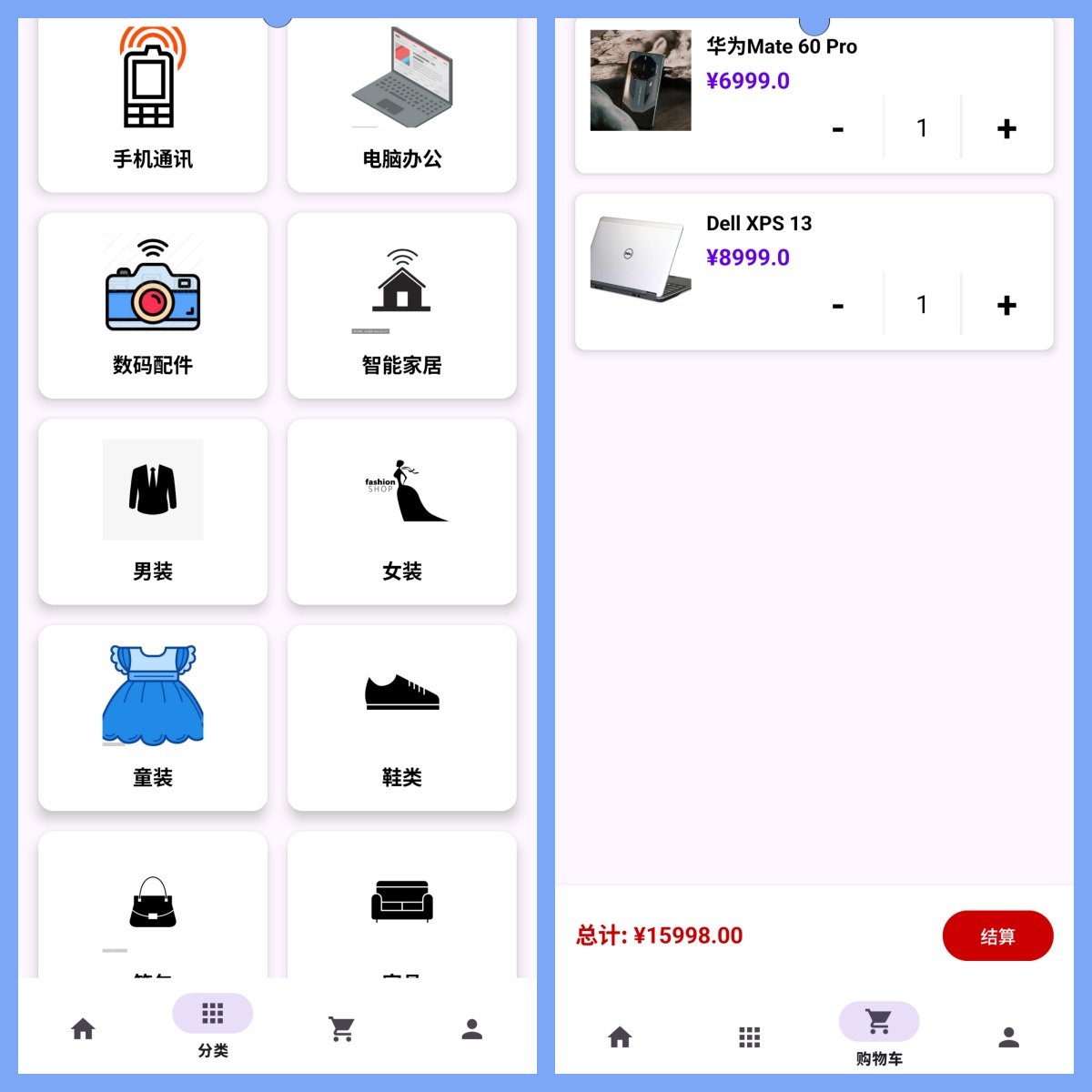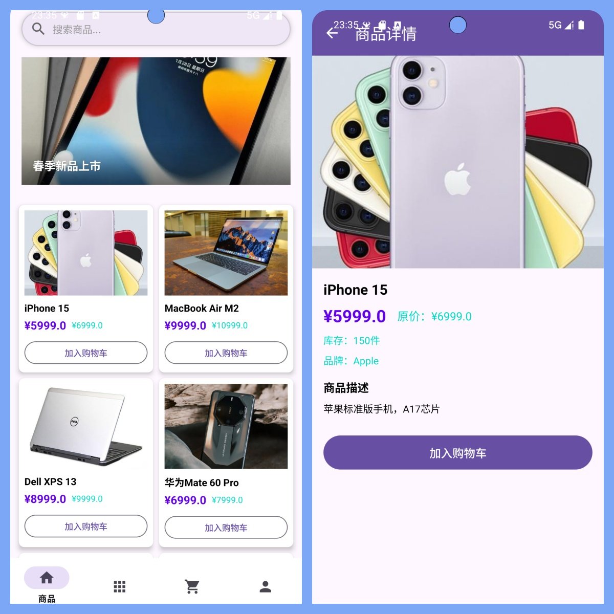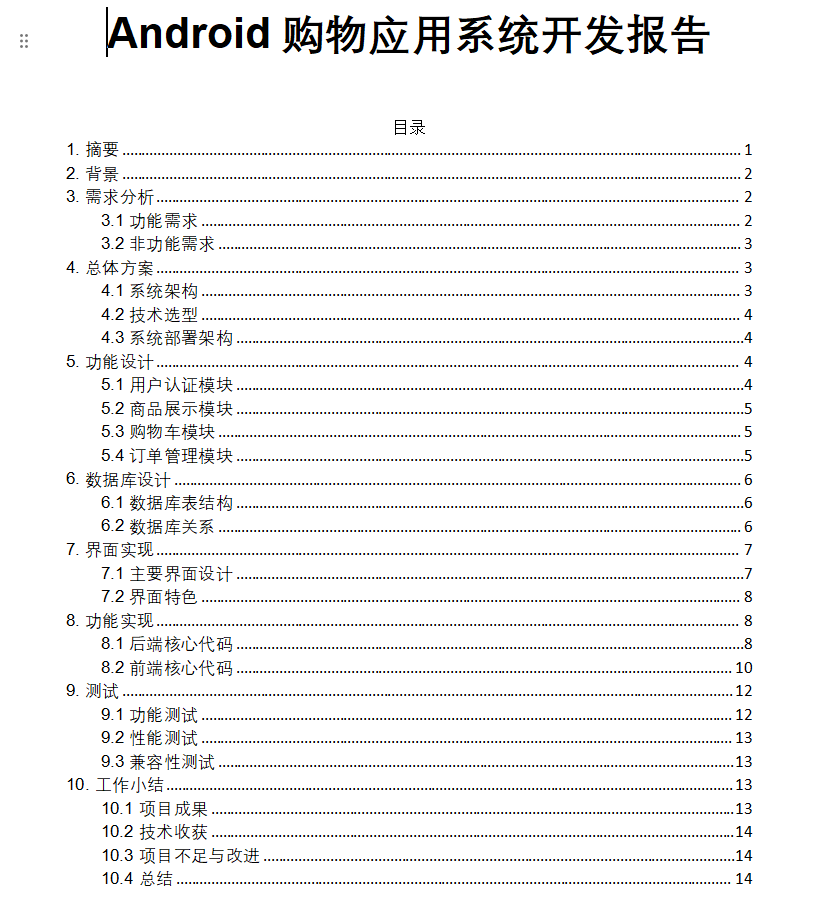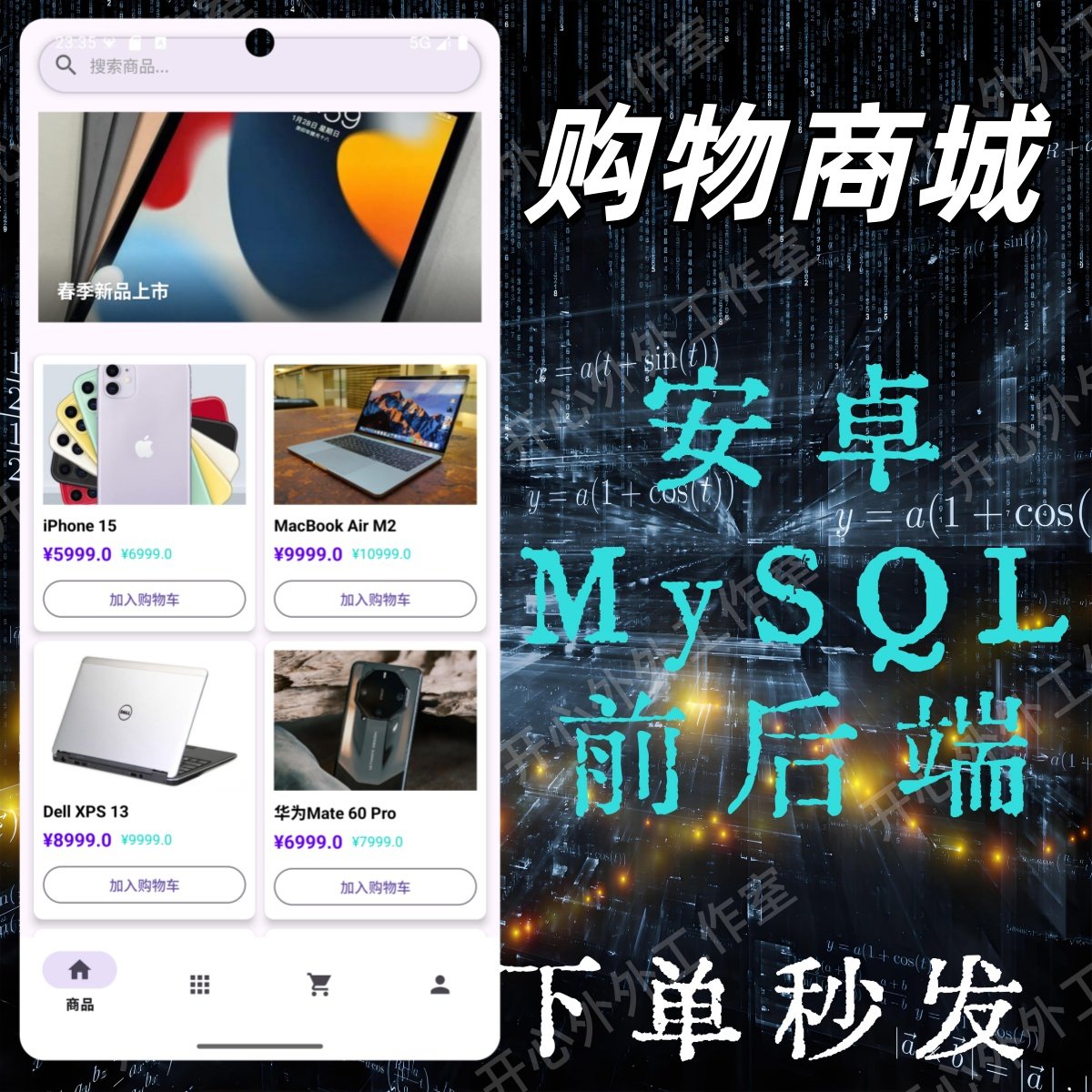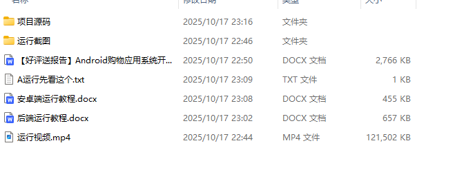 该项目基于主流移动开发技术栈构建,前端使用Android原生语言开发,运行环境为AndroidStudio;后端采用MySQL数据库进行数据存储与管理,实现用户注册登录、商品浏览、购物车、订单处理等核心电商功能。