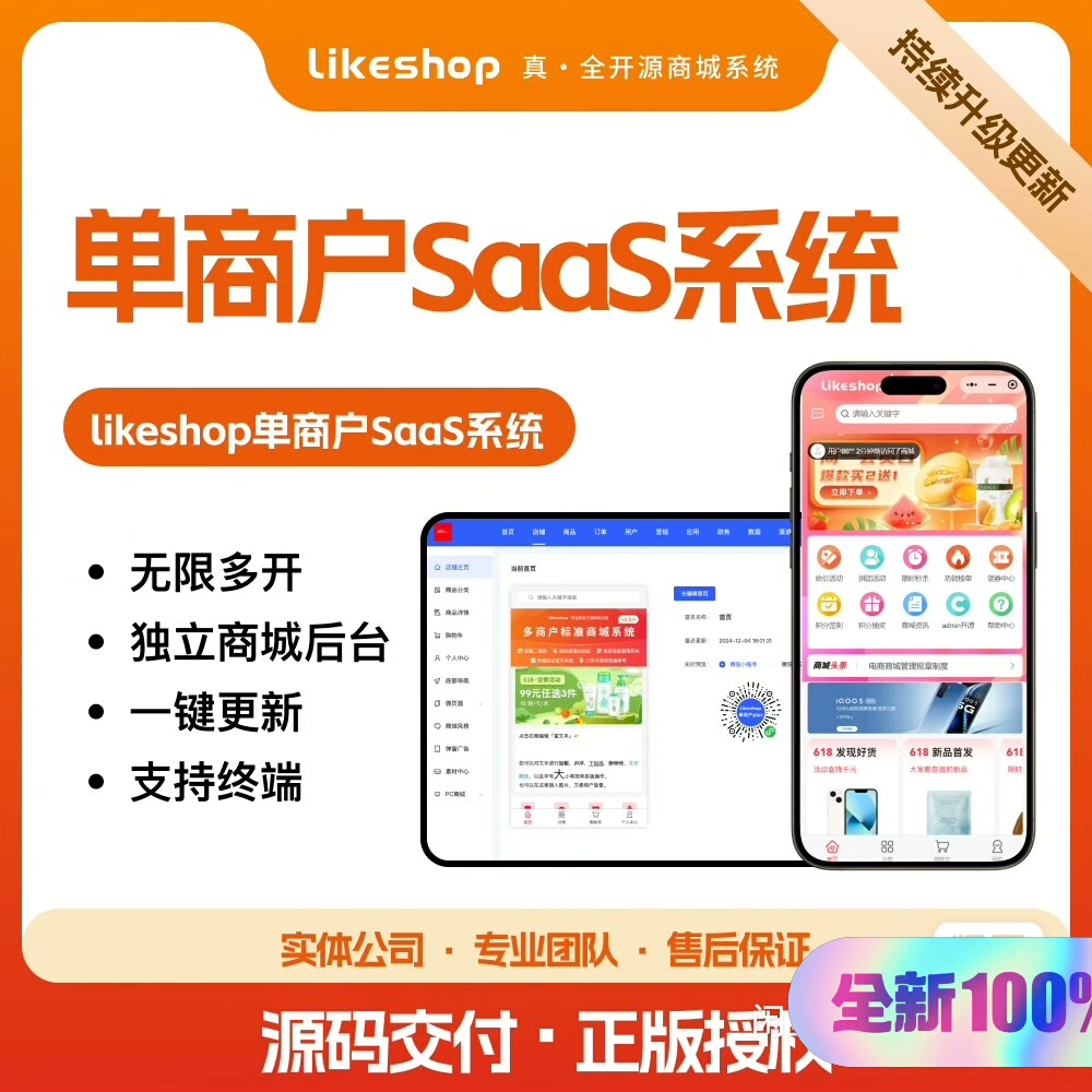 本系统基于全开源LikeShop单商户架构升级至3.6.1版本,全面支持SaaS模式下的无限多开功能。