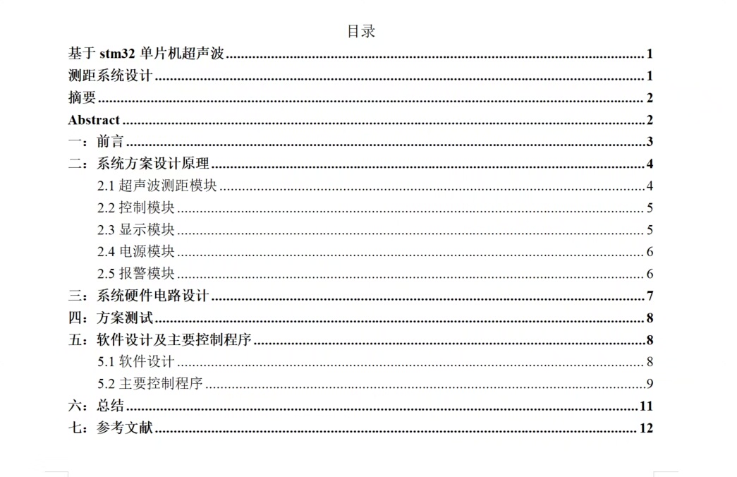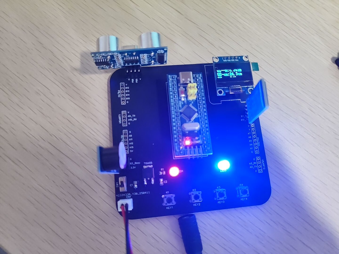 系统采用HC-SR04超声波传感器实现2cm至4m范围内的高精度测距,并通过OLED屏幕动态刷新当前测量值,确保数据可视化清晰直观。