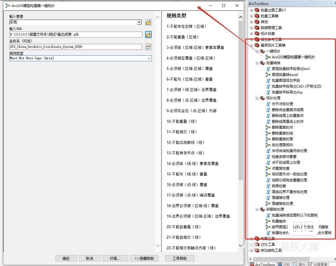 利用ArcGIS模型构建器打造自动化拓扑流程,用户只需双击选择目标数据,系统即可自动执行拓扑规则检查,实现真正意义上的一键式拓扑处理,极大提升工作效率。