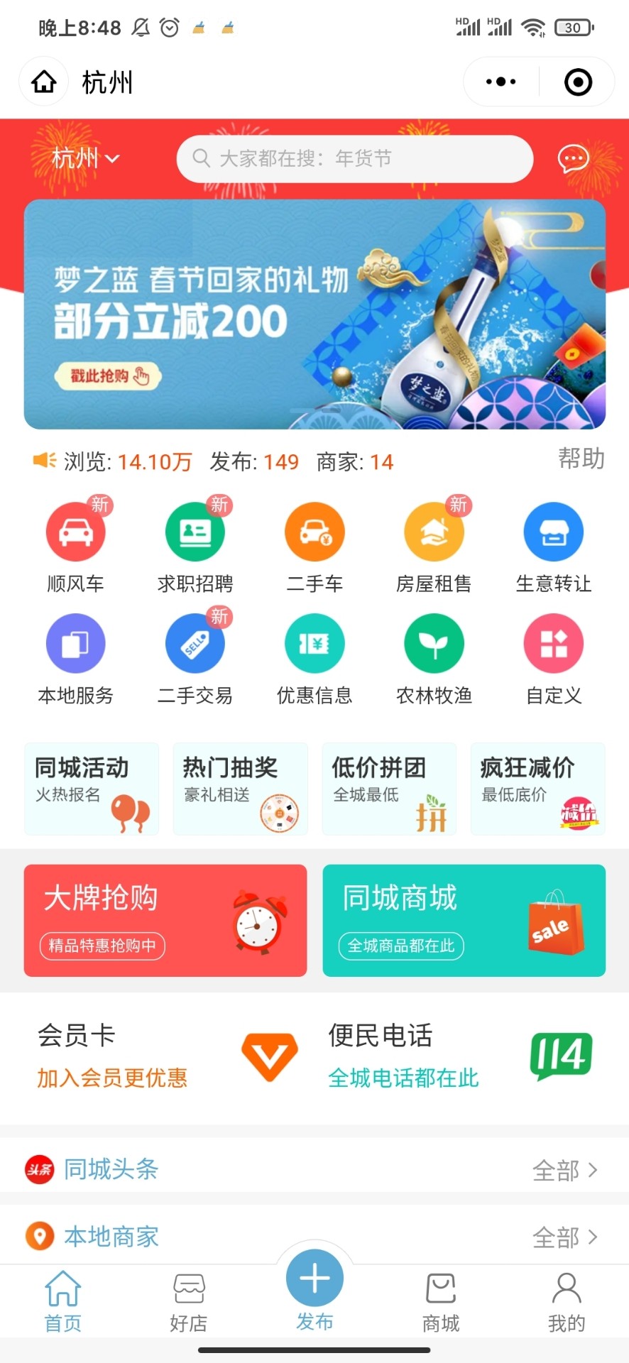 包含信息、商家入驻、同城拼团、二手交易、招聘求职等主流功能模块,满足多种运营场景需求。