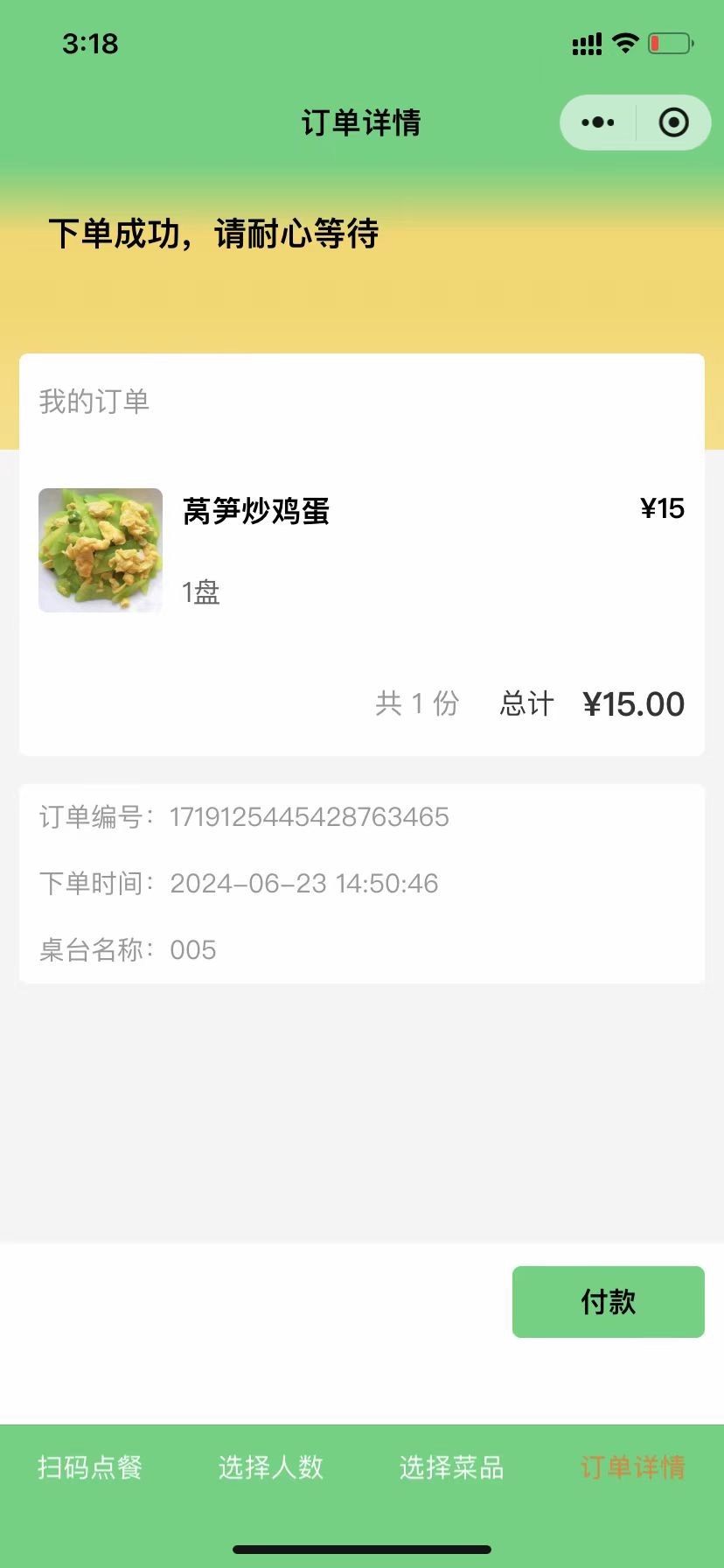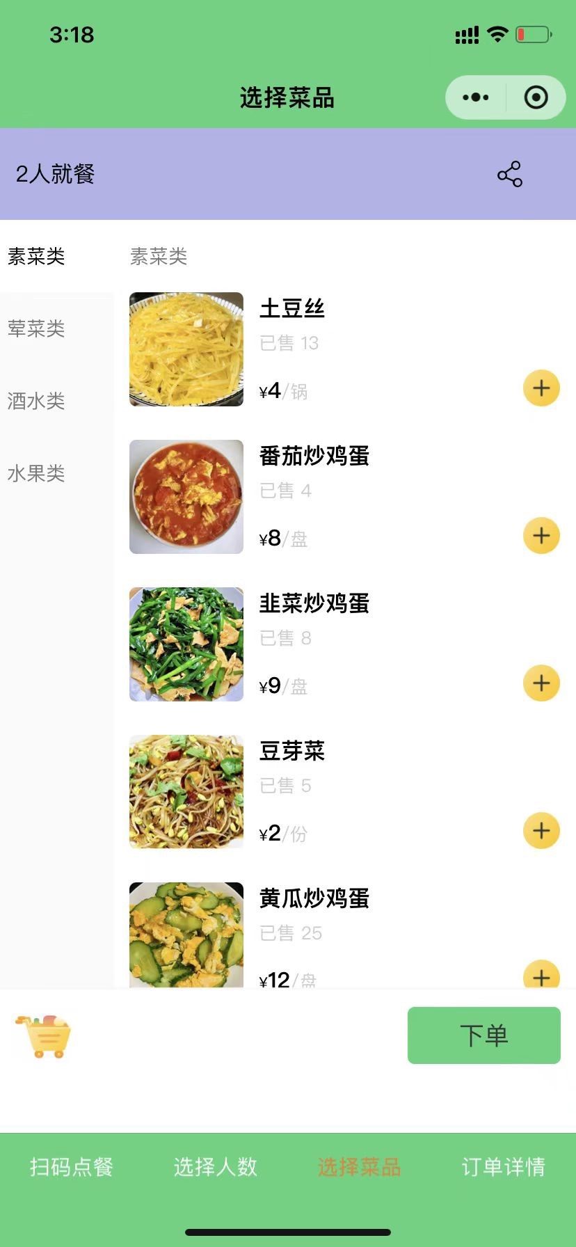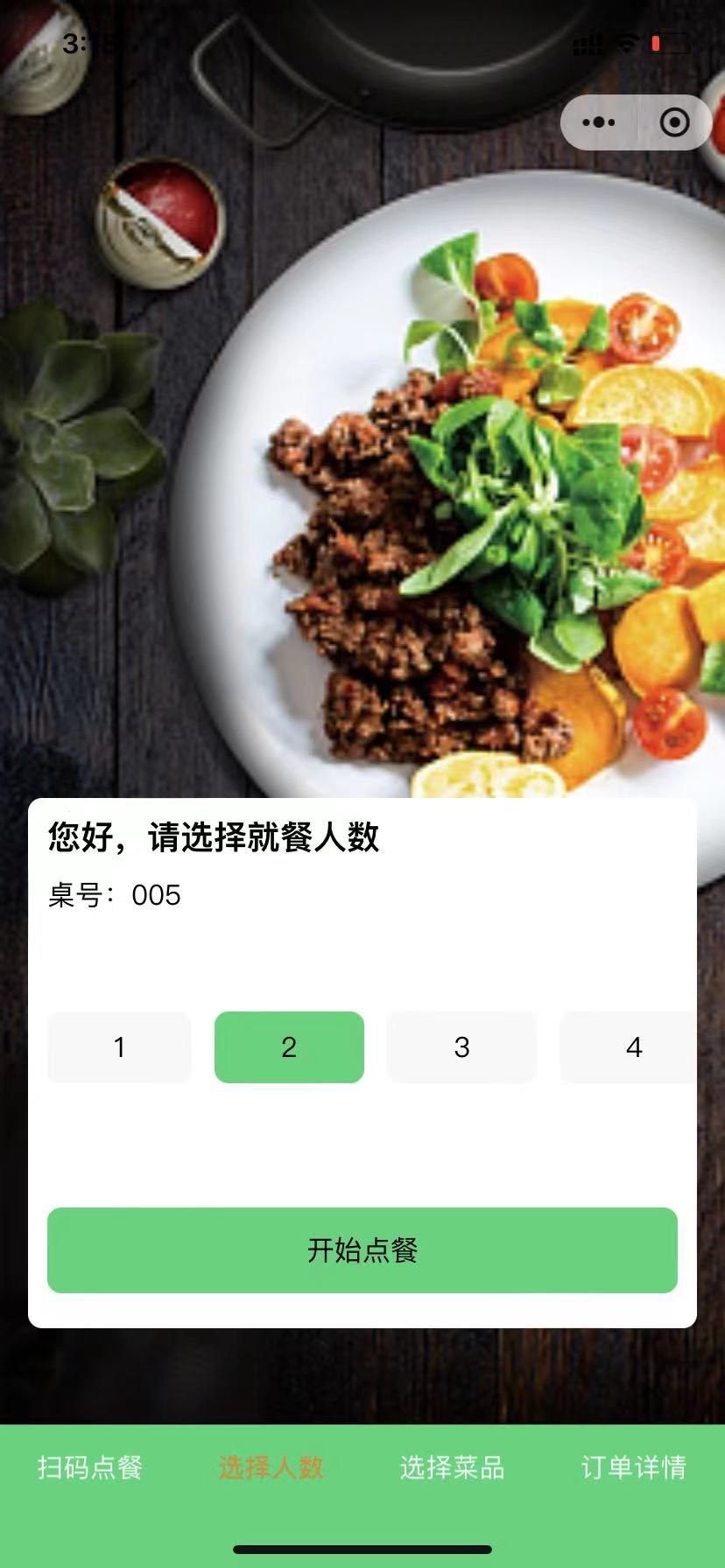 系统会提示选择就餐人数,随后浏览菜单、挑选菜品并加入购物车,最后提交生成订单,全过程流畅便捷,提升用餐体验。