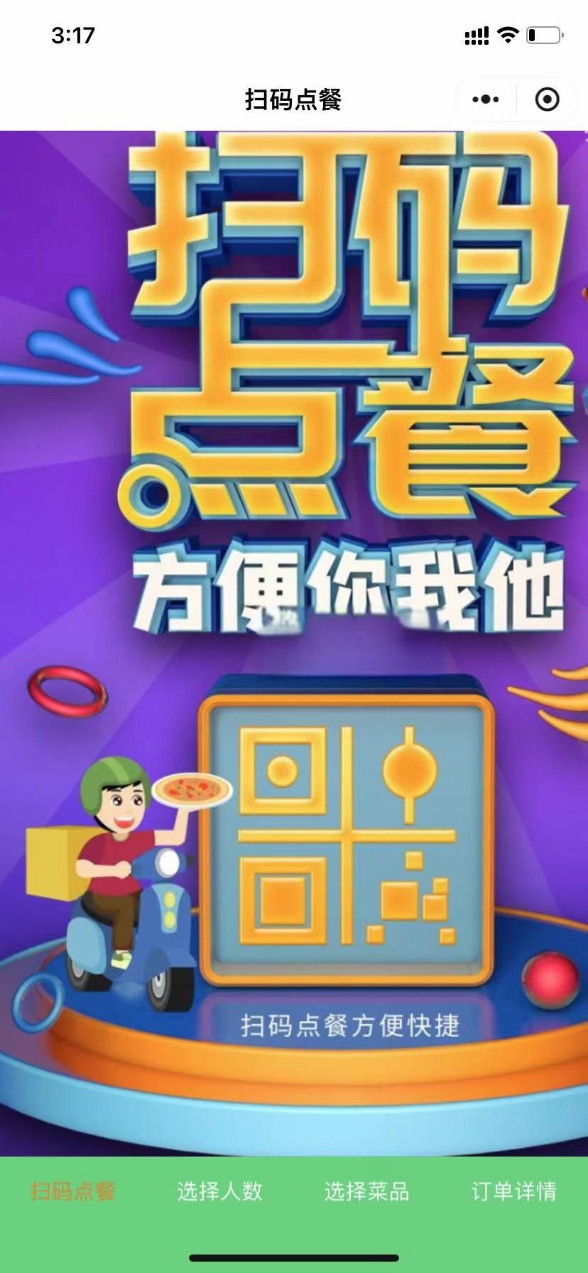 顾客入座后,使用手机扫描桌面上的二维码,即可进入点餐小程序。