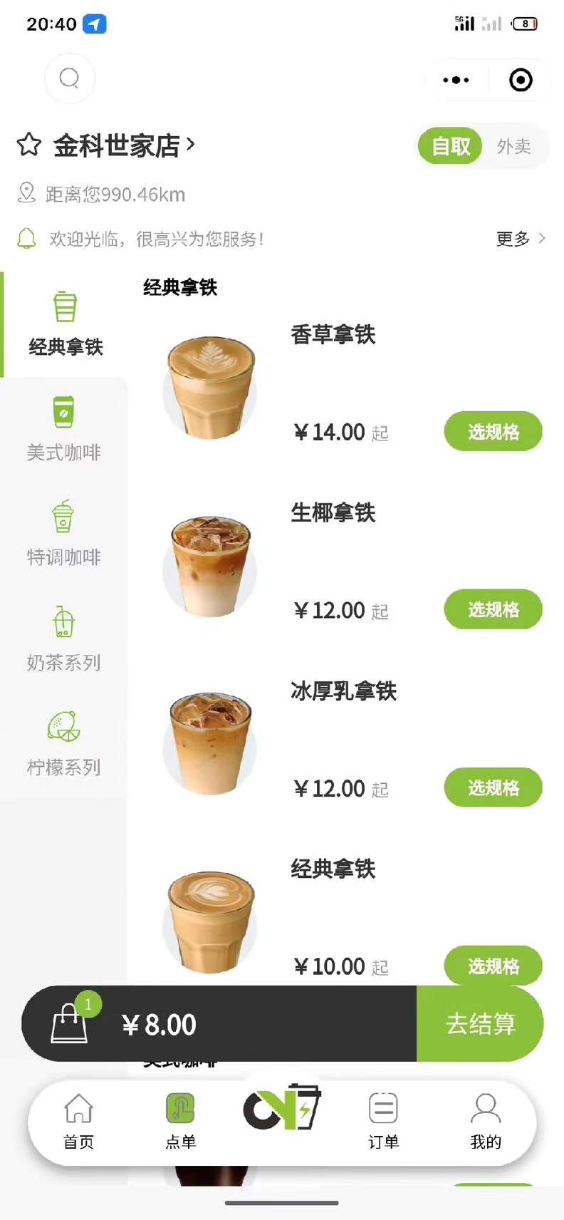 同时支持外卖配送和到店自取两种模式,并配备小票打印功能,提升门店运营效率。