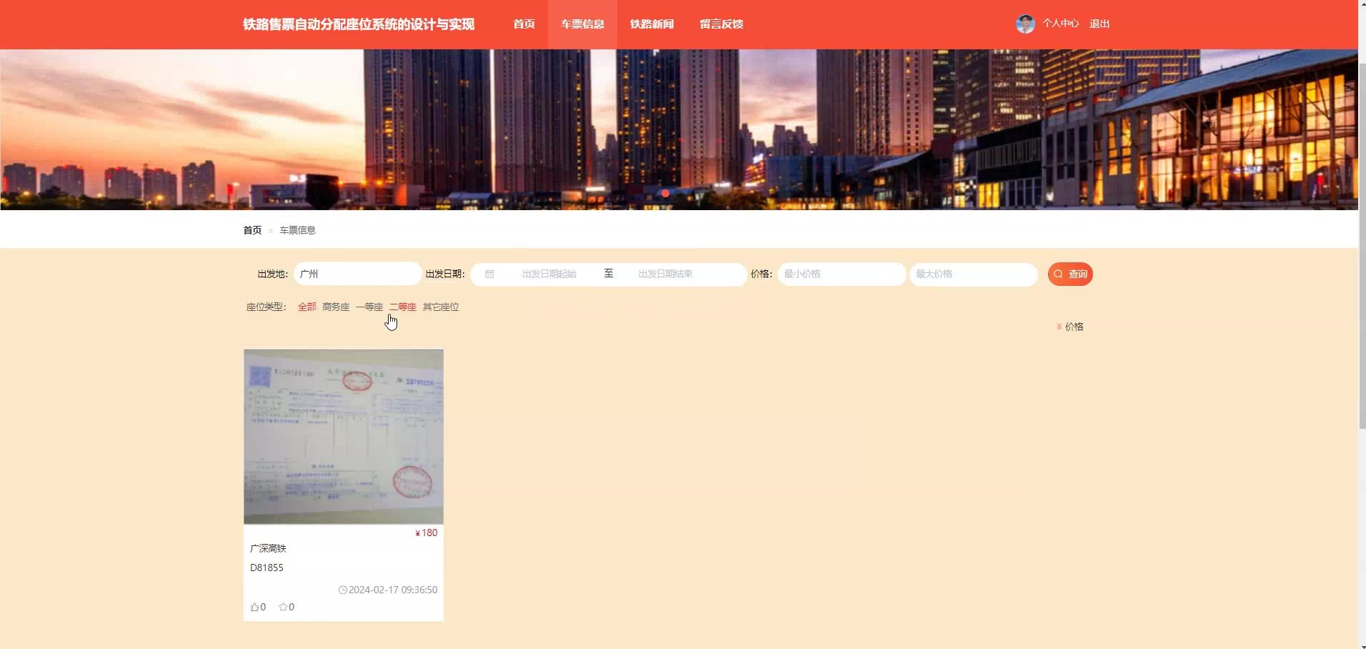 系统实现了用户购票、余票查询、智能选座及自动分配座位等核心功能,适用于高校毕业设计、课程项目或企业级应用参考。