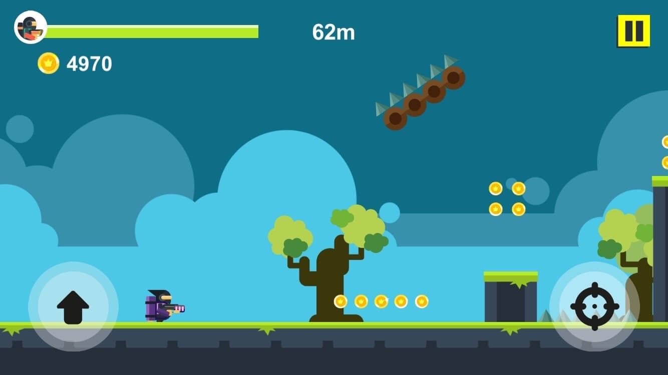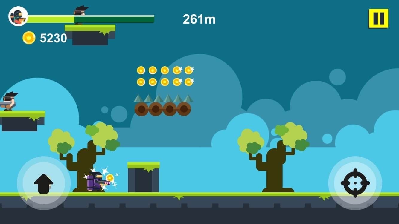 包含生命恢复包、穿透子弹、时间减缓、护盾等7种实用道具;内置金币结算与角色解锁商店,支持扩展付费角色与皮肤内容。