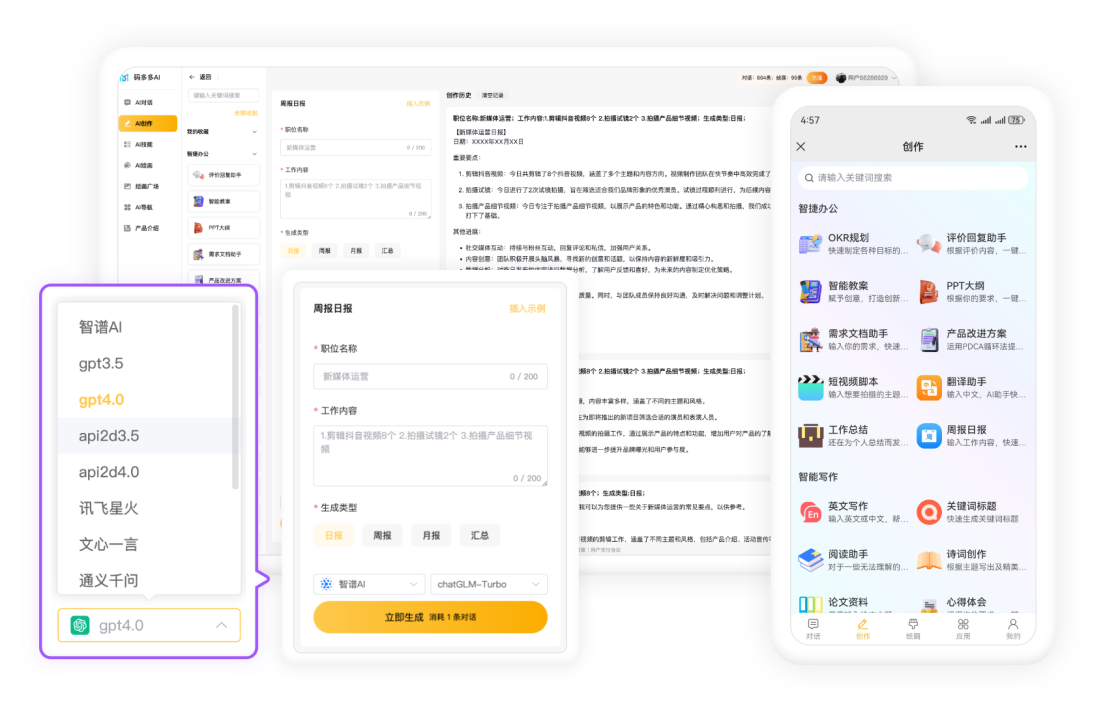 系统深度整合国内外主流大语言模型API,支持智能问答、内容生成等AI对话能力。