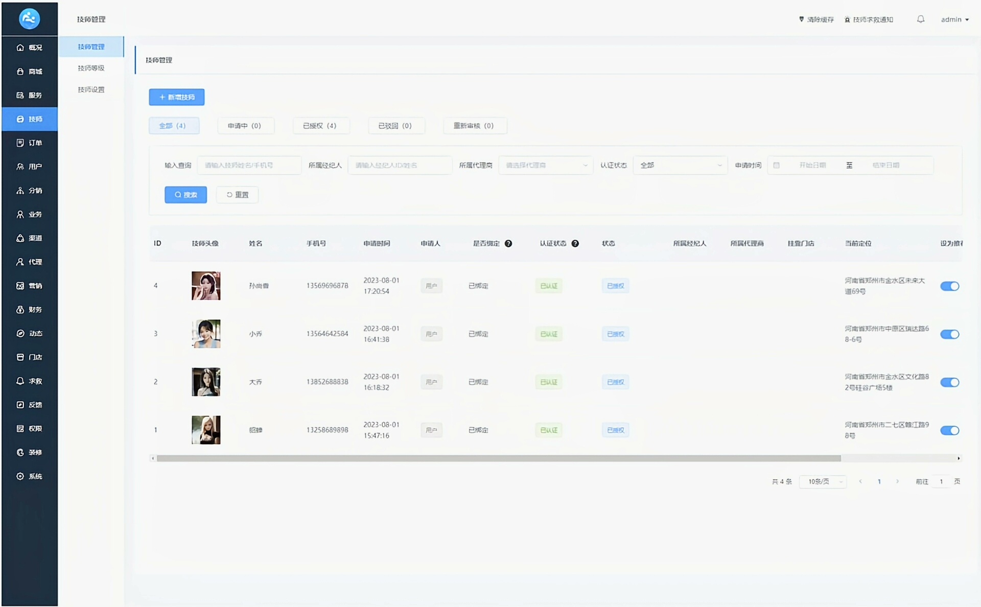 平台可为特定技师设置独立的固定分成比例,代理商调整需经平台审核通过,兼顾运营自主性与管理可控性,保障业务有序开展。