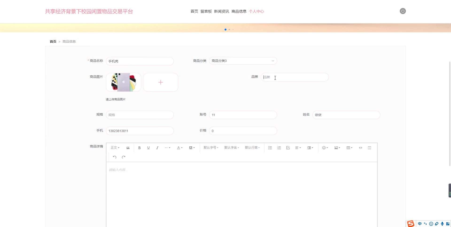 本系统是一款专为高校学生打造的Java校园闲置物品交易平台,采用主流前后端分离架构,后端基于SpringBoot框架高效开发,前端使用Vue.js实现响应式交互界面,数据库选用稳定可靠的MySQL,全面满足校园场景下的二手交易需求。