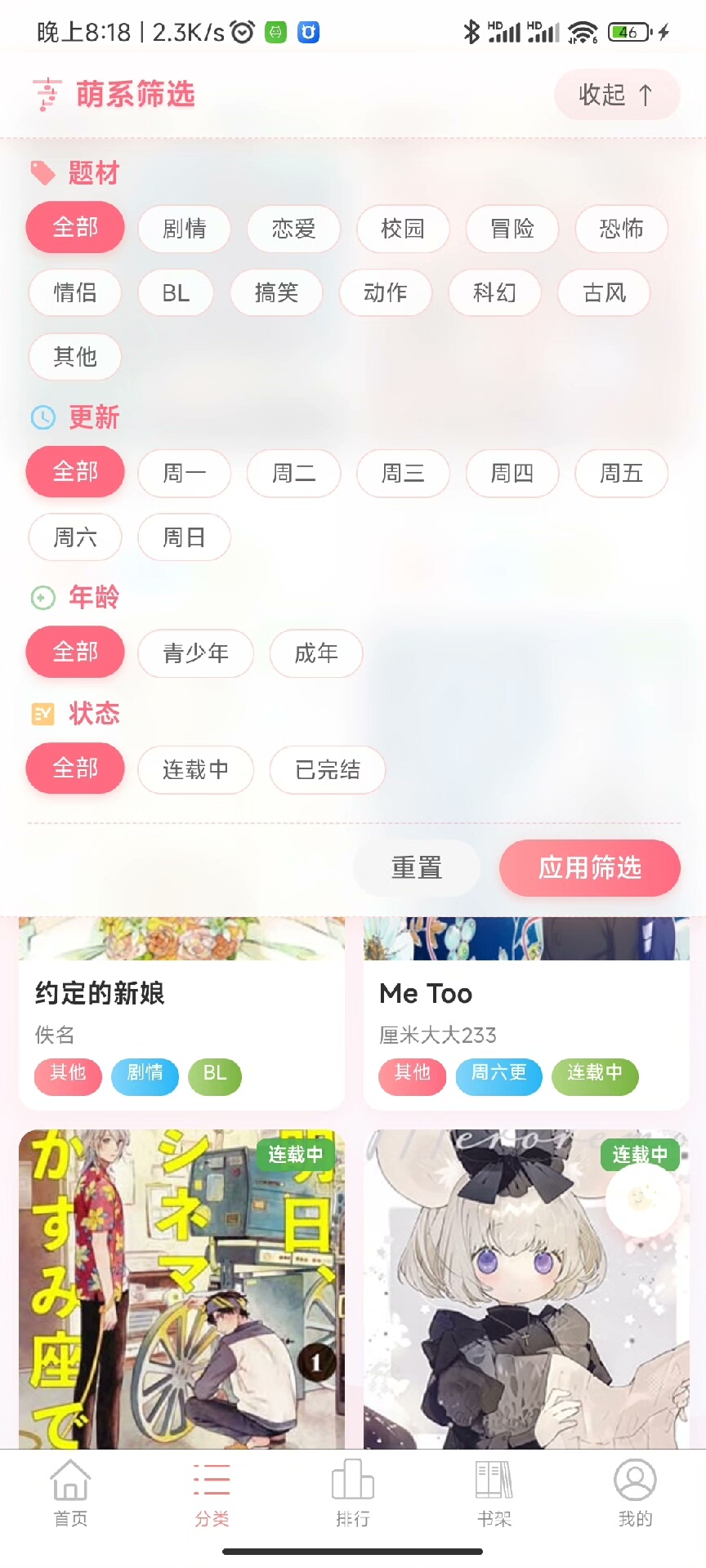 本漫画类移动应用源码正在持续优化与迭代中,当前页面展示内容仅作参考,具体功能与界面请以私聊沟通为准。