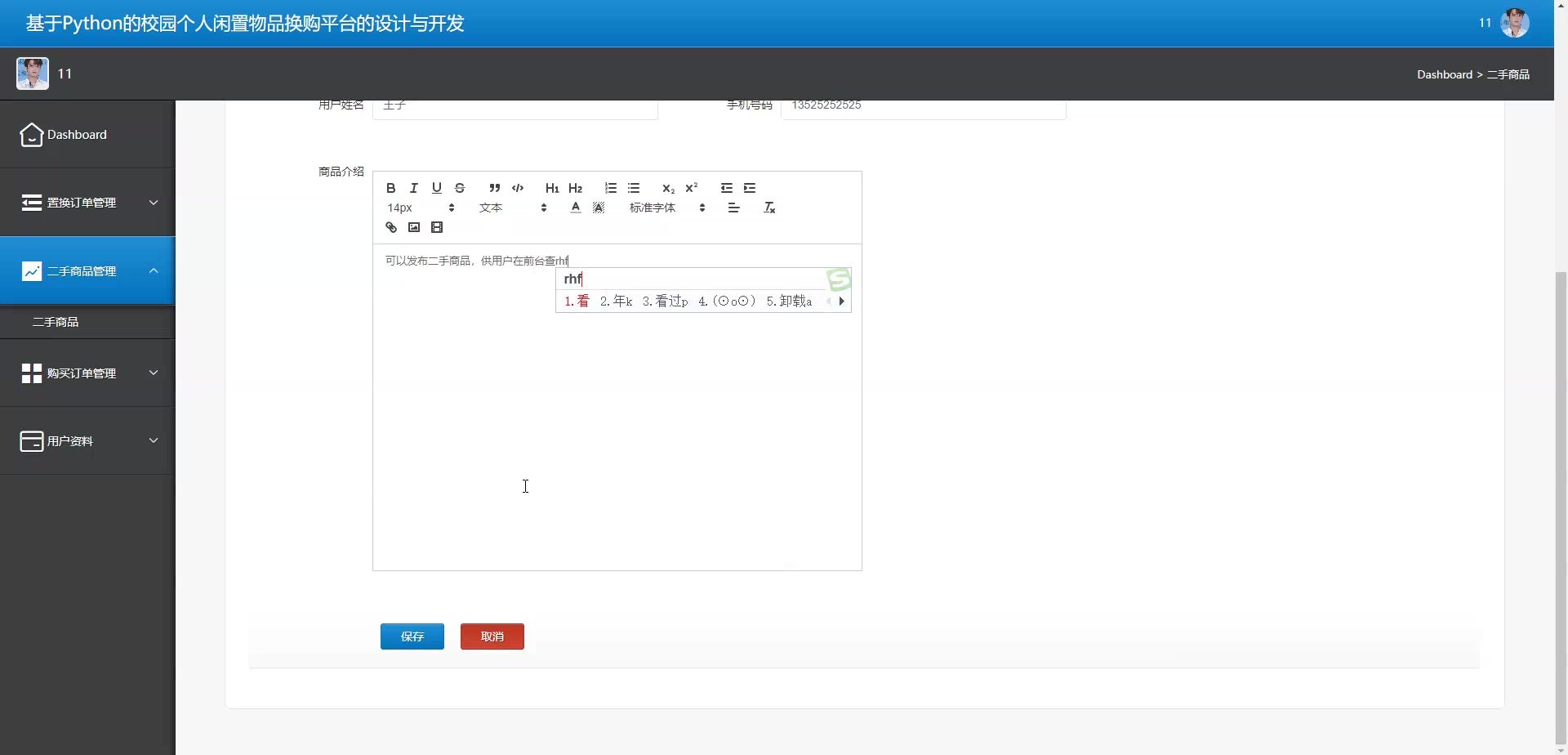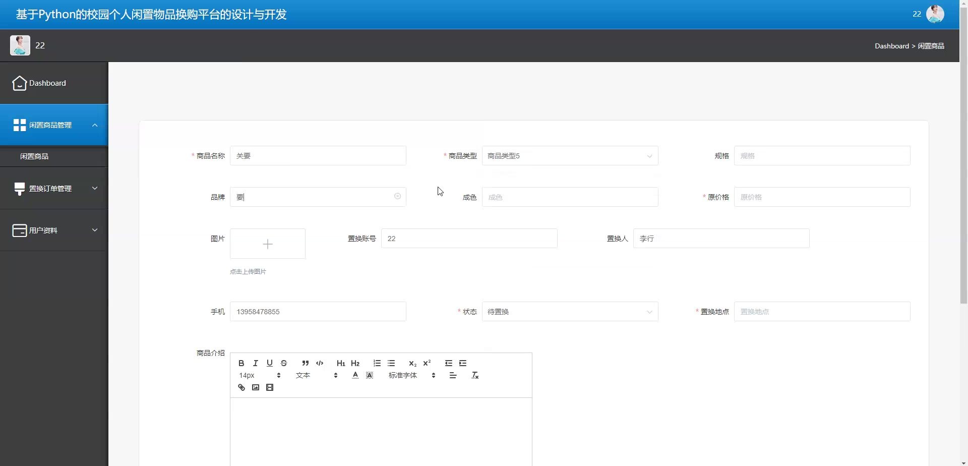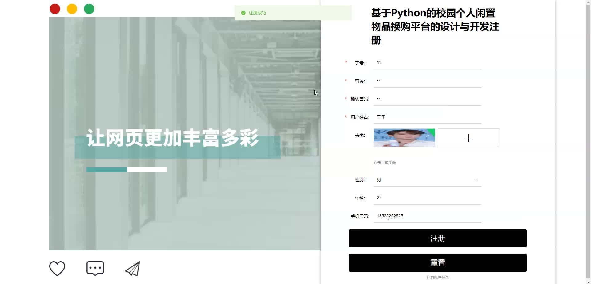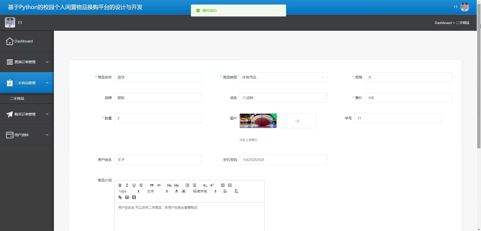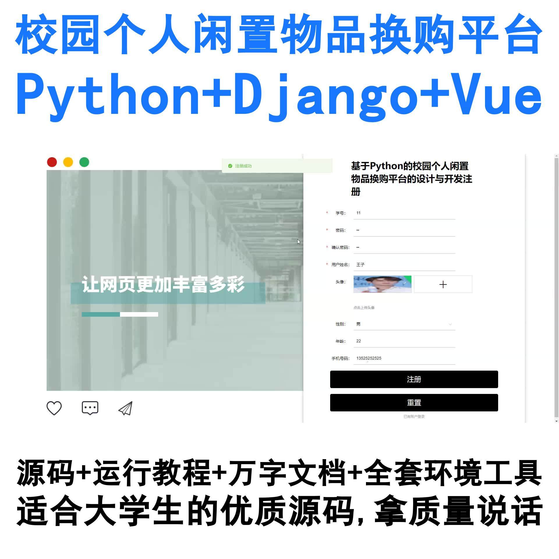 本项目是一款专为高校学生打造的个人闲置物品在线换购平台,采用主流Python Web框架Django构建稳健后端,搭配响应式Vue.js前端实现流畅交互体验,底层使用MySQL高效管理用户、商品与交易数据。