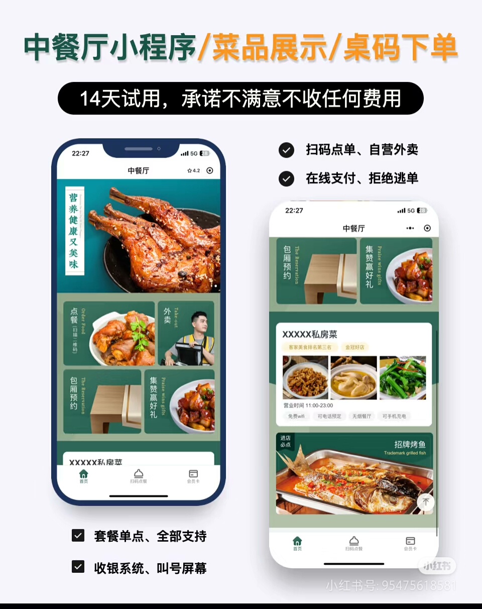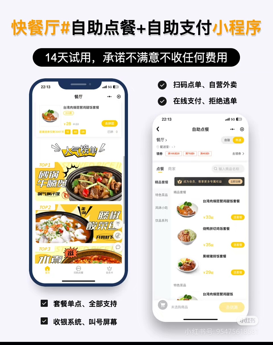 支持H5网页、支付宝小程序、抖音小程序等多端接入;含商家后台、好友代付、预约配送、预订下单、扫码点餐、后台人工点单、优惠券、积分体系、会员等级、分销裂变、账户充值等功能;集成多品牌小票打印机、DIY装修模板、收银台统一管理模块。