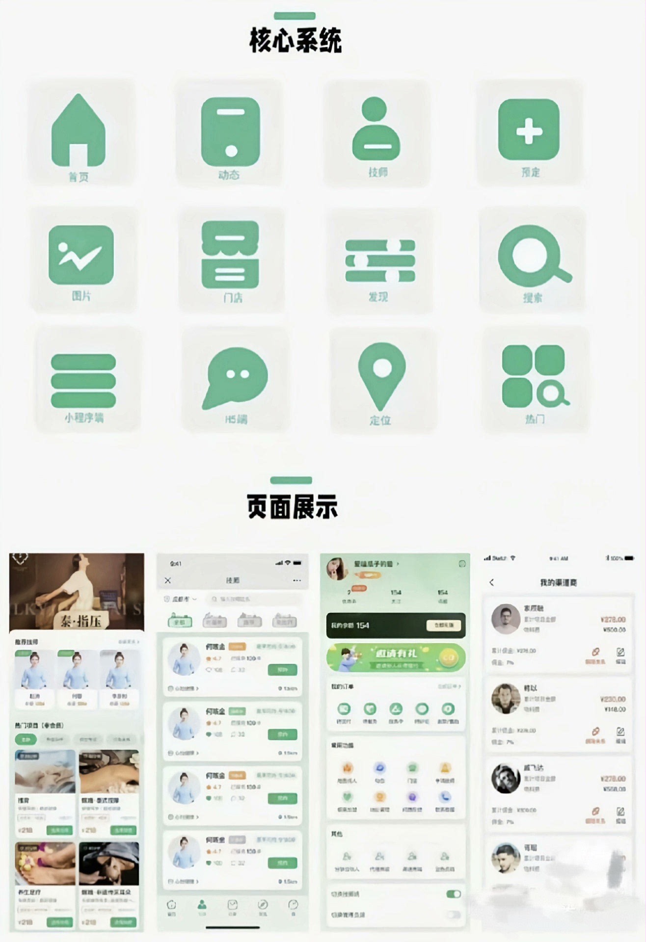 包含用户端、服务人员端、后台管理三大模块,集成在线预约、订单管理、支付结算、服务评价、地理位置定位等全套功能,开箱即用,助力创业者快速上线项目。