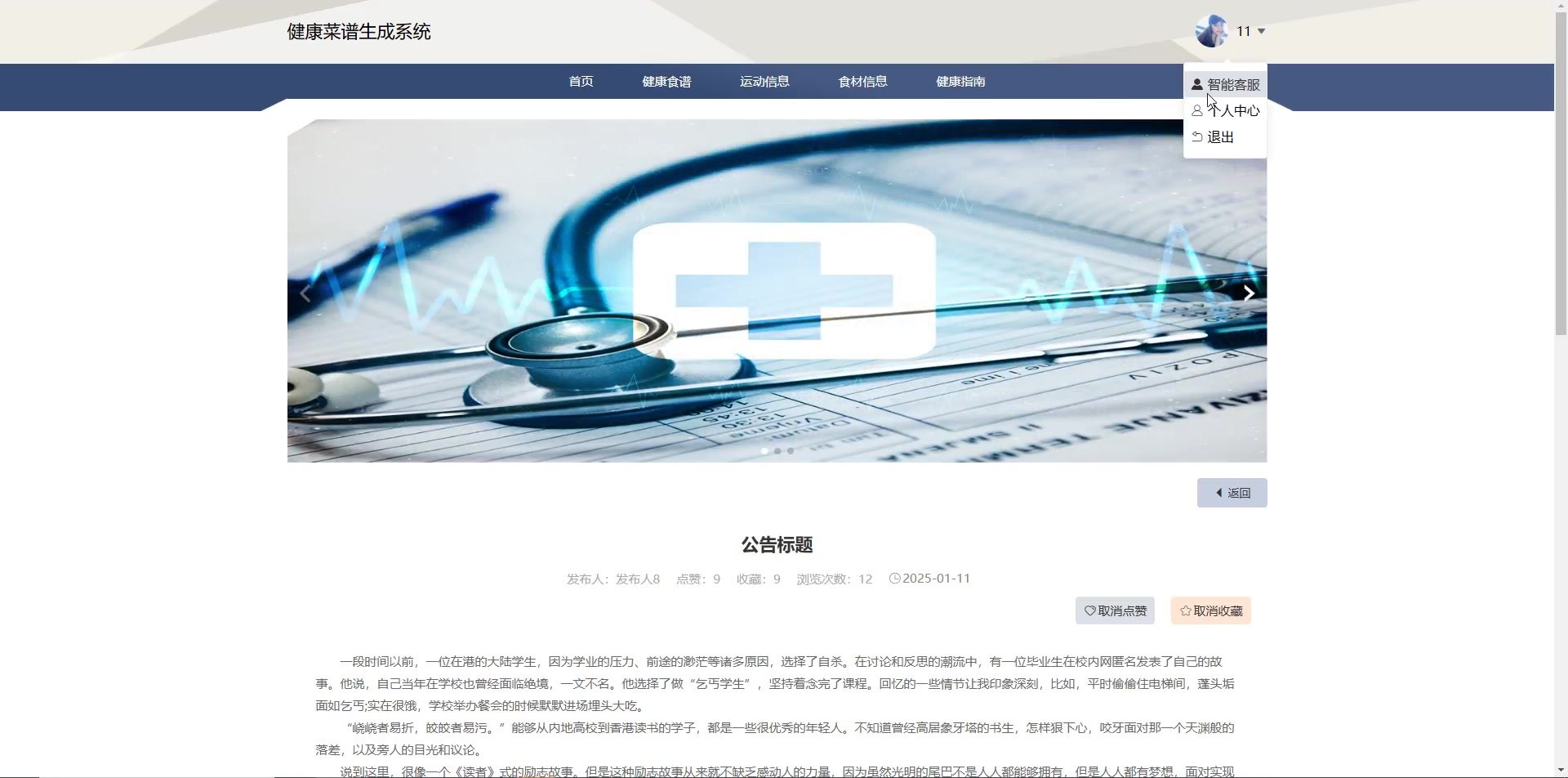 系统通过科学算法推荐符合用户健康需求的菜品,适用于个人学习、课程设计及实际应用开发。