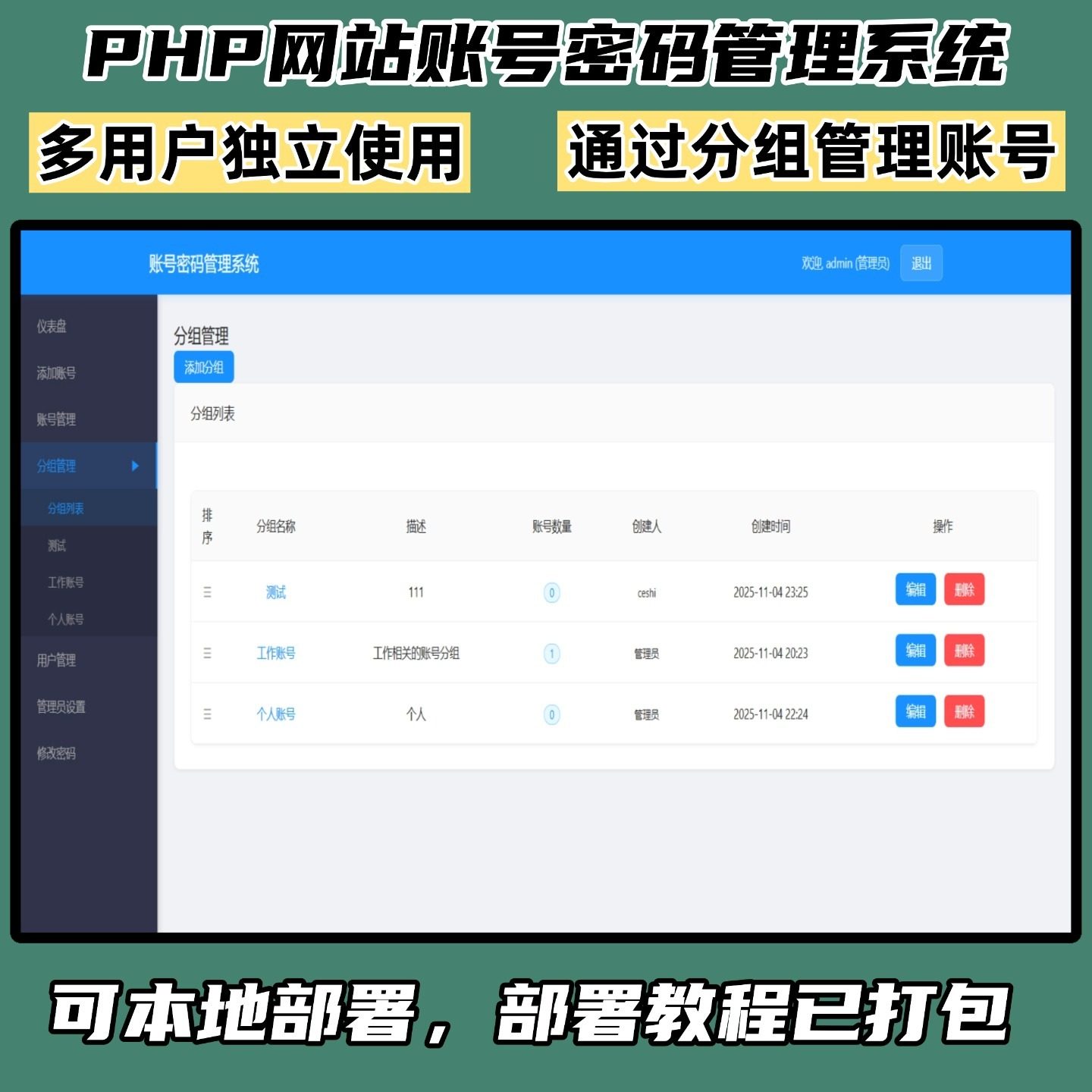 适用于企业内部员工账号管理、团队协作场景或个人私密信息存储等多种用途。