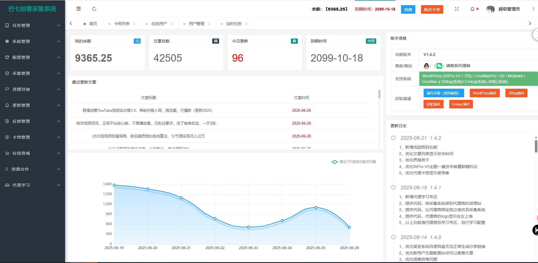 本系统是一款专为网创站长打造的800字级轻量级资源同步工具,支持知识付费类资源的全自动采集、分类与实时更新,彻底替代传统火车头采集方式,无需编写规则、无需24小时挂机。