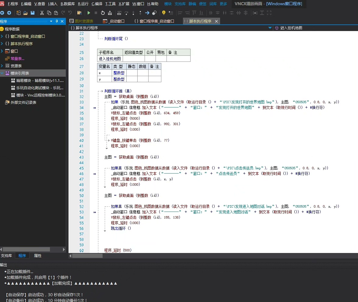 该源码核心功能包括实时远程桌面显示、屏幕图像比对识别(找图技术),以及远程端的鼠标点击和键盘输入模拟。