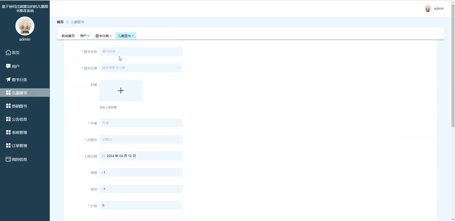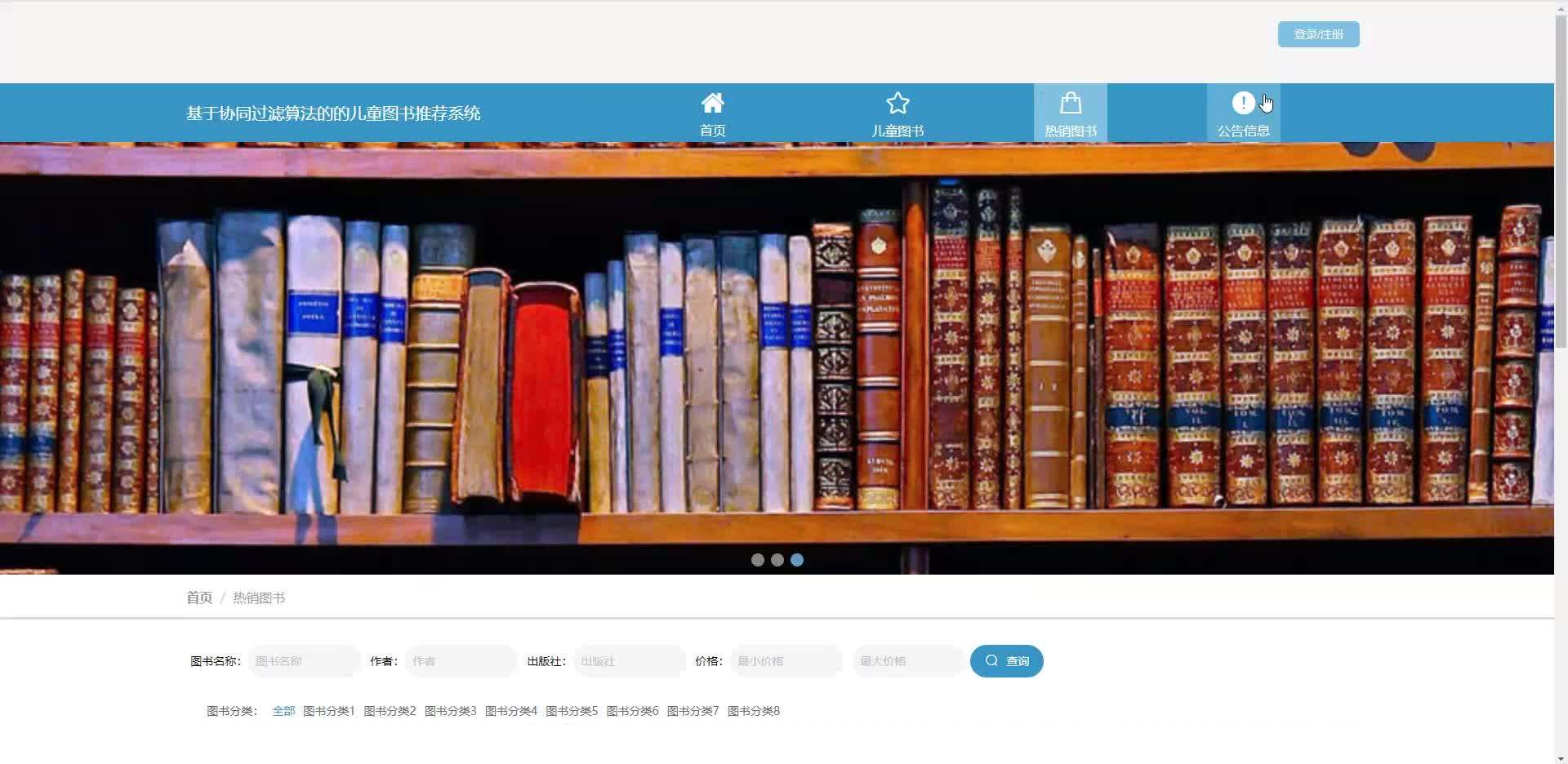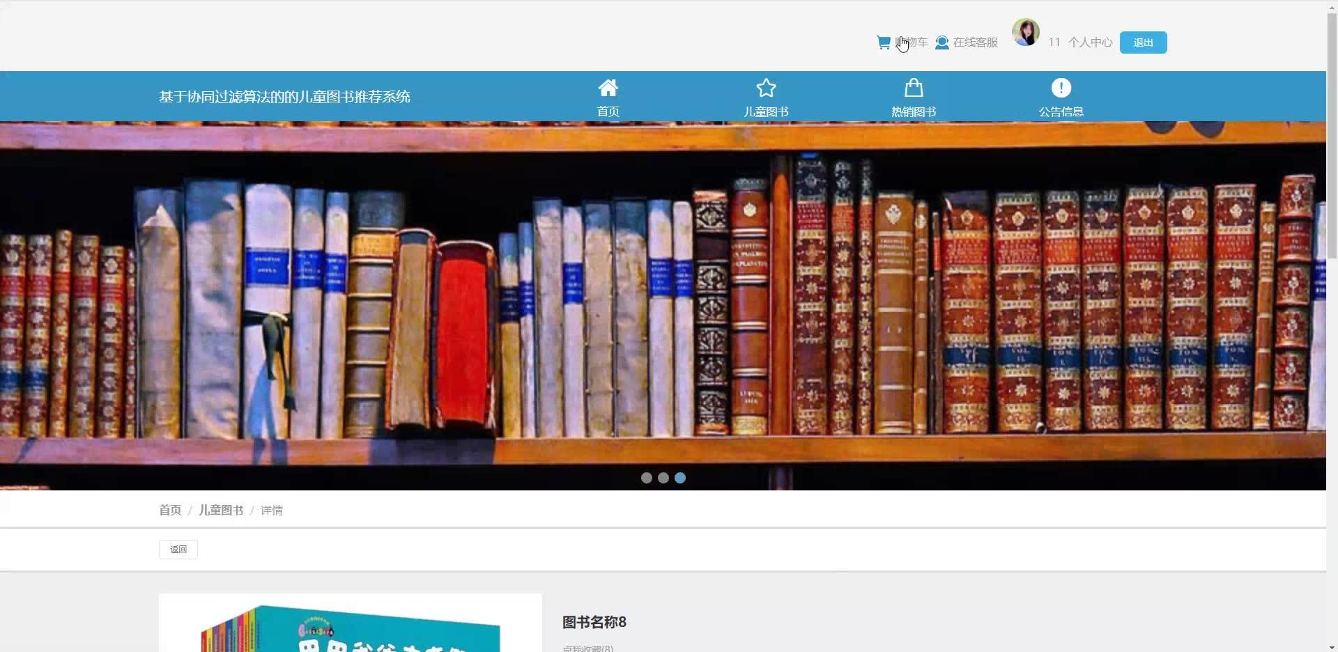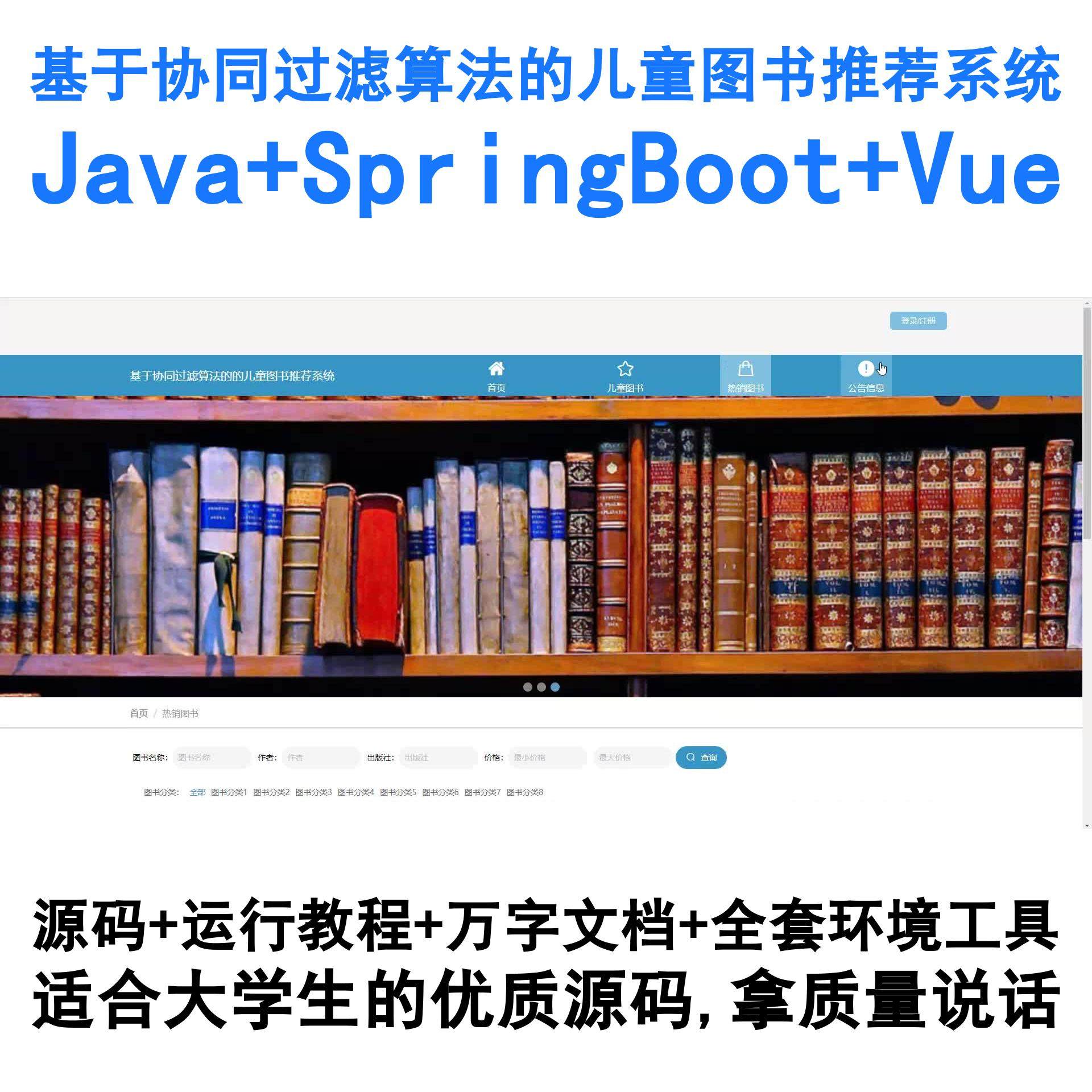 本系统是一款面向儿童阅读场景的智能化图书推荐,核心采用协同过滤推荐算法,精准匹配儿童兴趣偏好与图书内容特征,显著提升阅读推荐准确率与用户粘性。