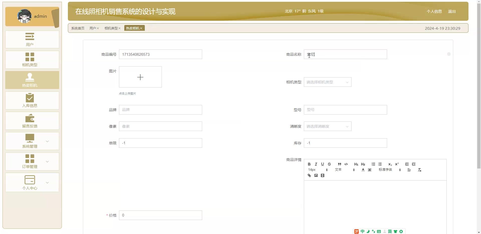 本系统是一款功能完备的在线照相机电子商务平台,采用成熟稳定的C#.NET后端架构与响应式Vue前端框架构建,实现商品展示、购物车管理、订单处理、用户中心等核心电商功能,适配现代Web应用开发标准。