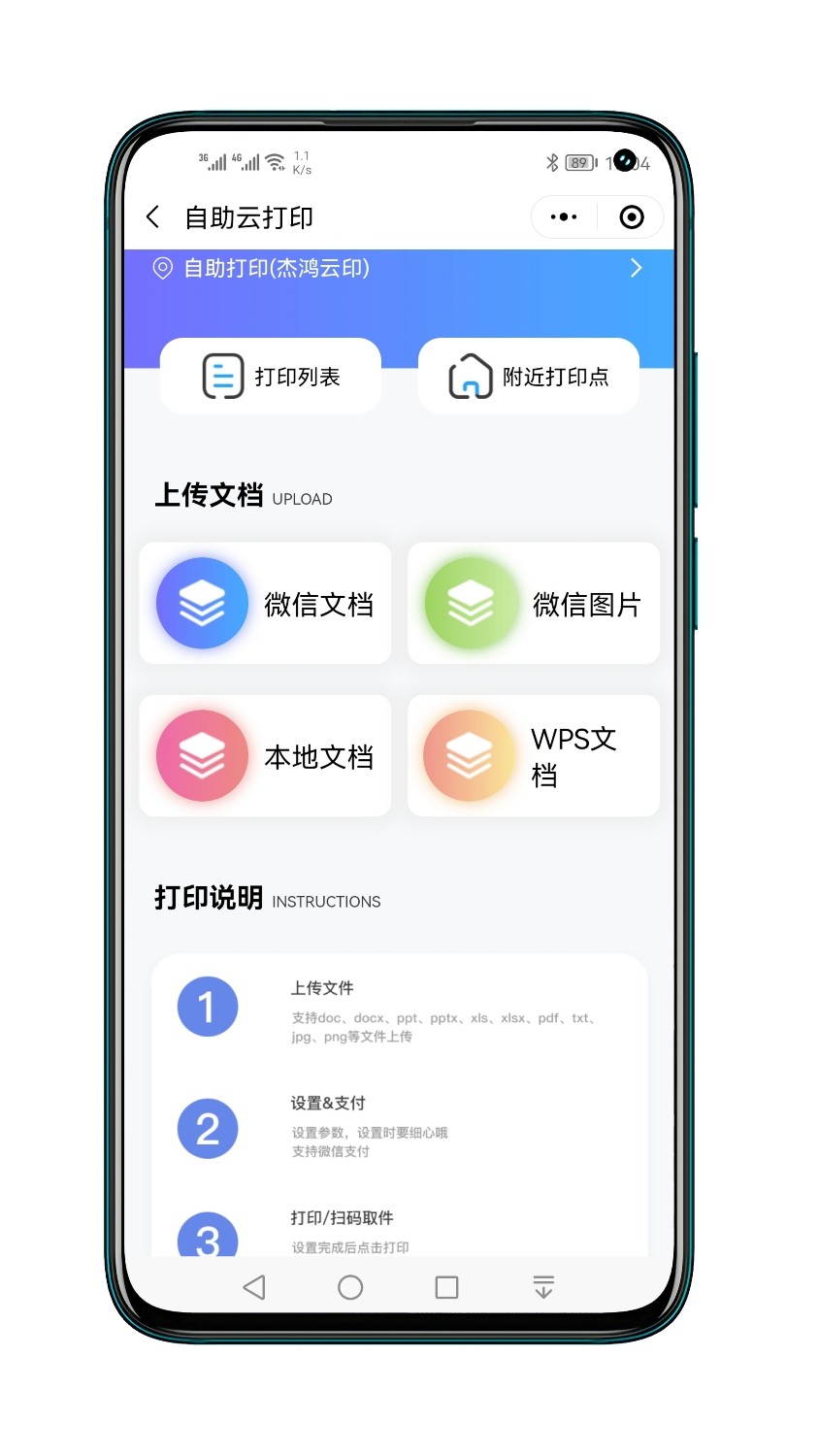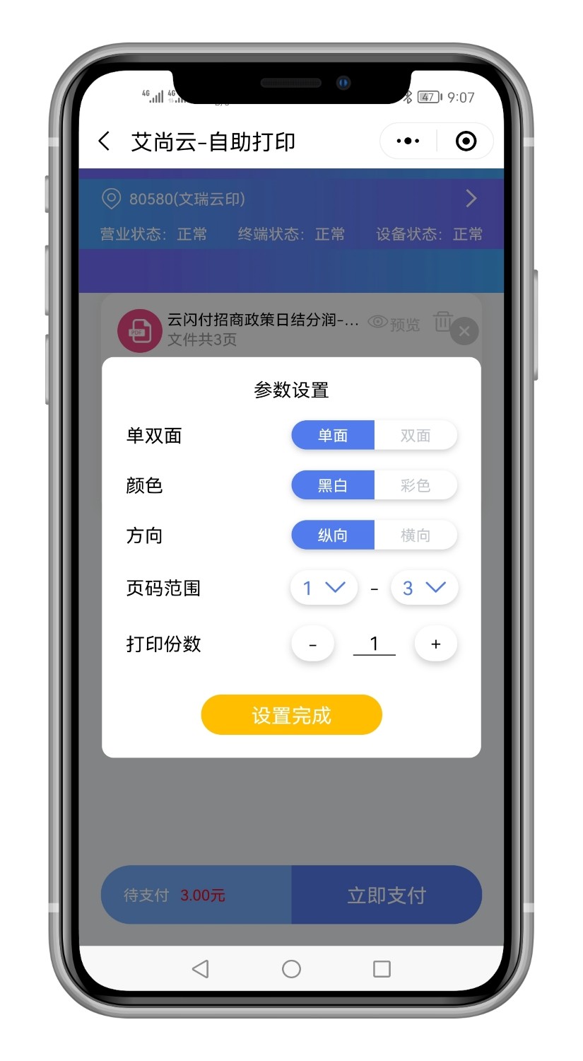 支持高清证件照智能裁剪与背景替换;内置OCR文字识别模块,提升扫描文档清晰度;兼容A4/A5/证件照等多种纸张规格;支持PDF、Word、JPG、PNG等主流格式上传打印;集成微信扫码支付与订单状态实时追踪功能。