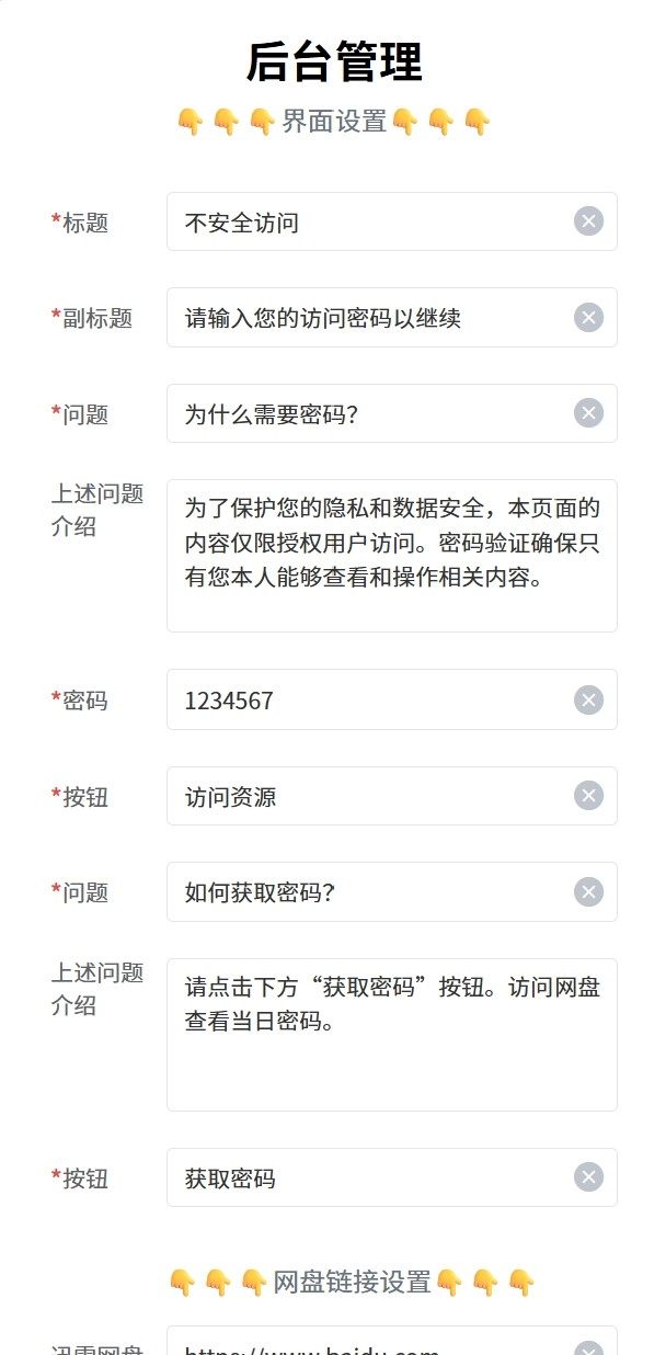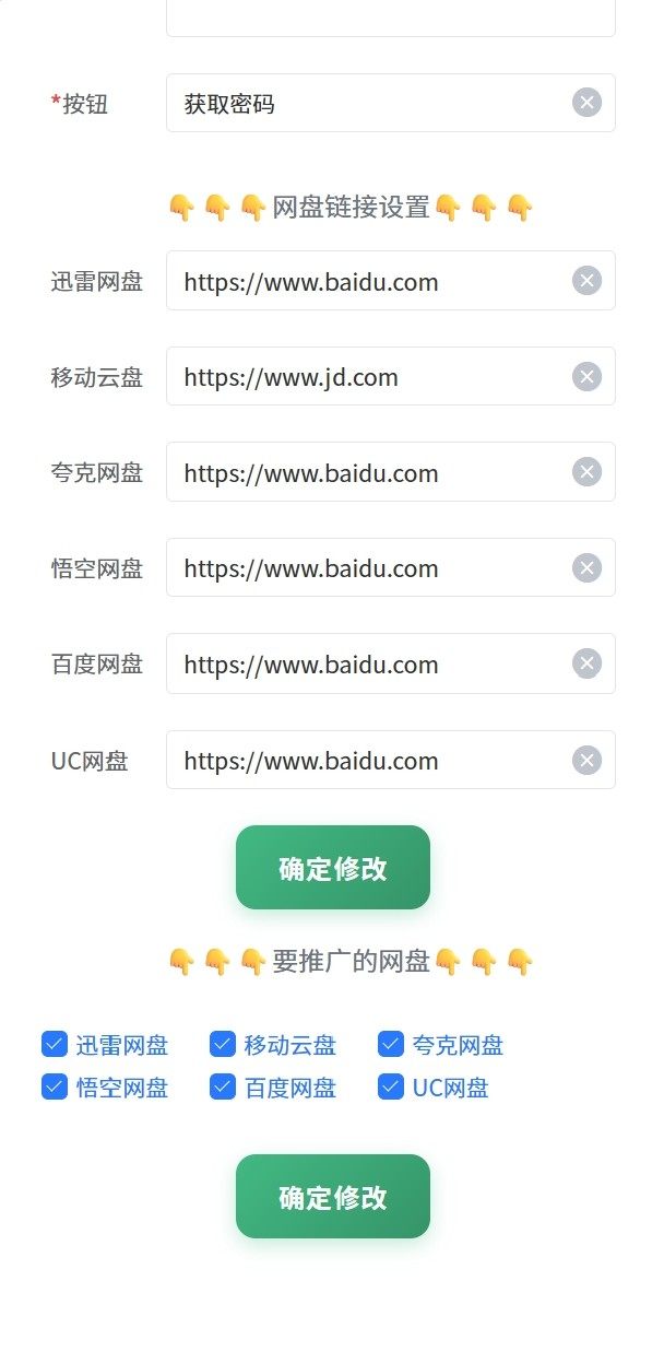 本系统原生支持迅雷网盘、中国移动云盘、夸克网盘、悟空网盘等当前热门平台的链接密码自动提取功能,满足多样化推广场景。