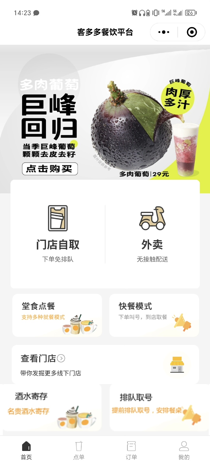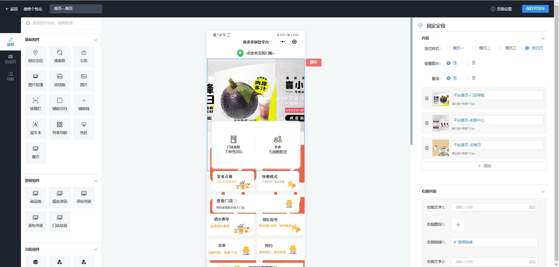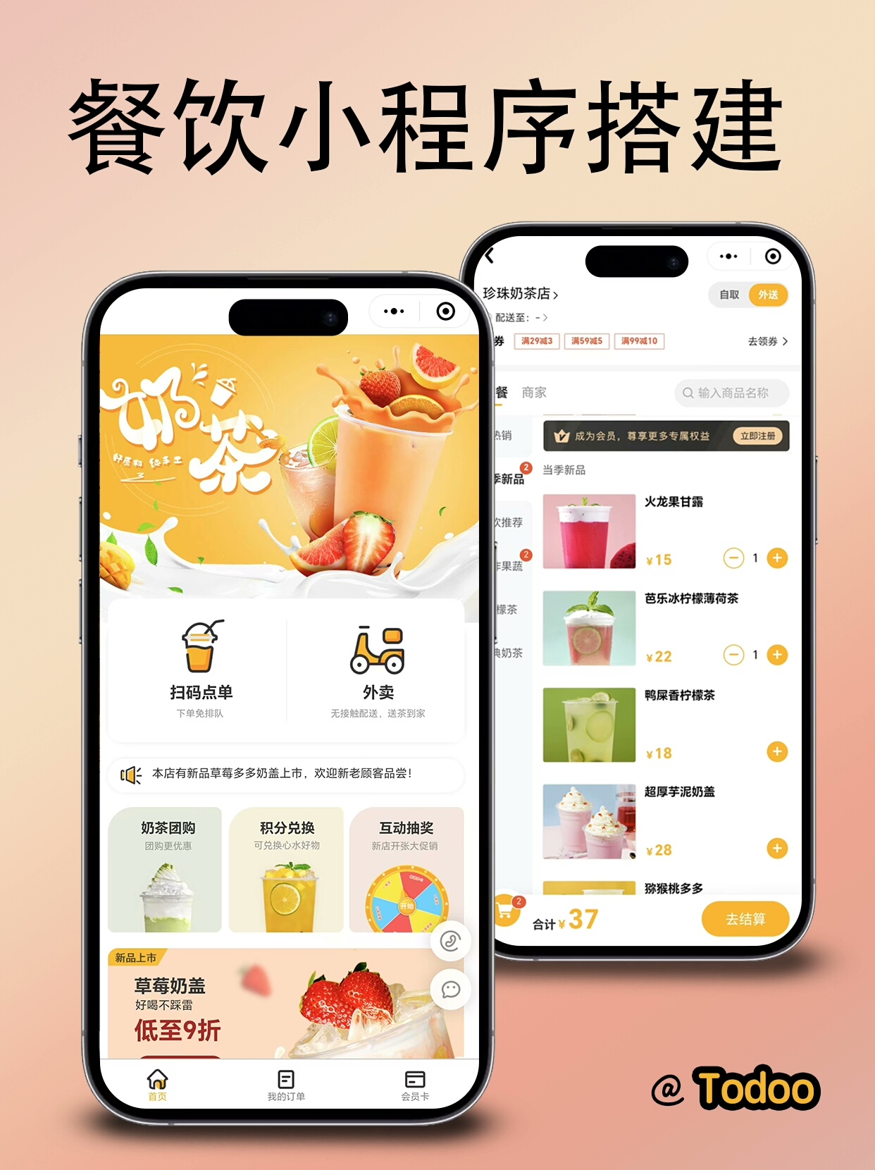 支持微信小程序、H5网页、支付宝小程序三端同步;首页图标、菜单栏、商品页、订单页均可DIY装修;门店支持座位二维码管理、小票打印机对接、好友代付、取餐码核销等功能,满足连锁品牌标准化与个性化双重需求。