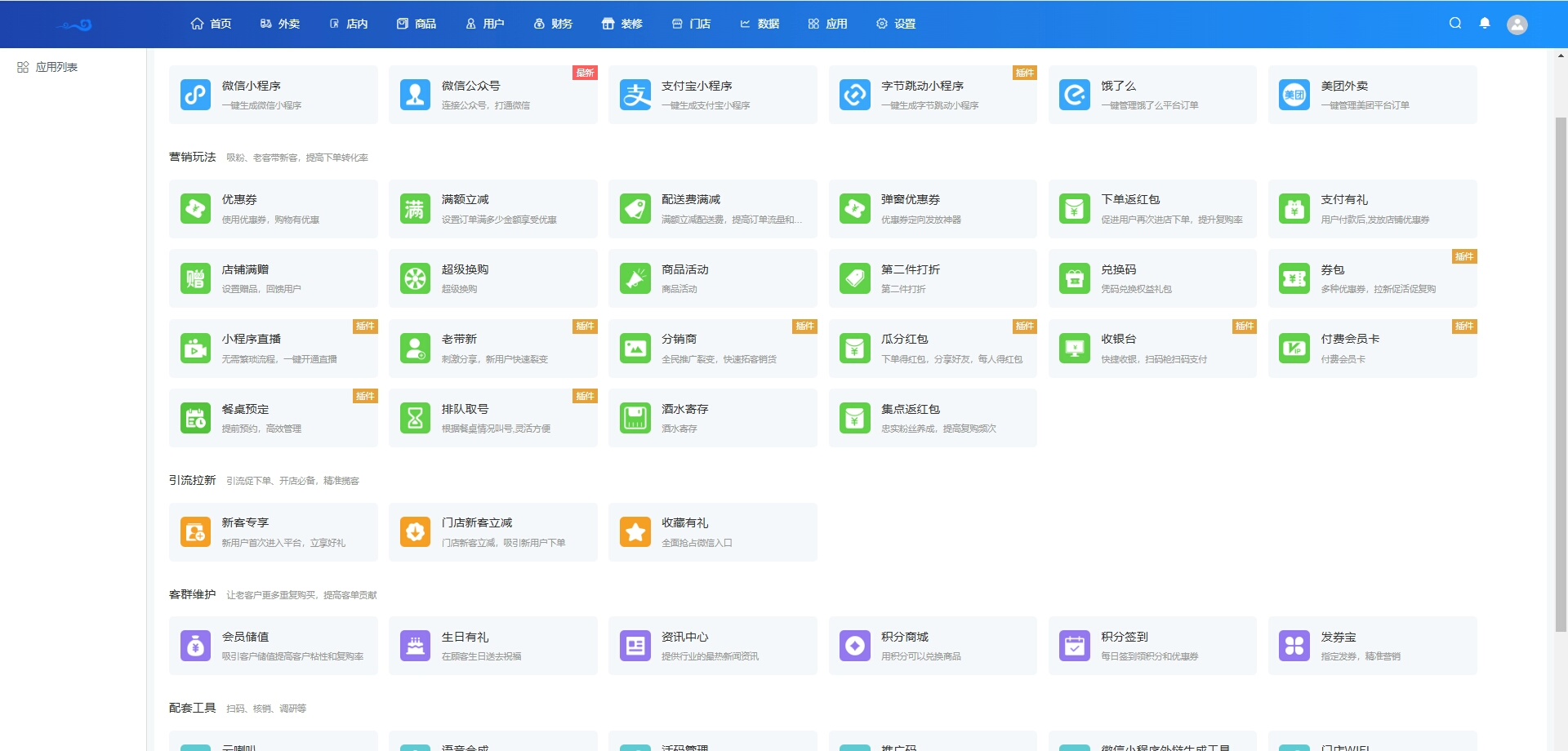本源码为餐饮行业深度定制:一站式覆盖外卖接单、堂食扫码点餐、后台人工代客下单三大核心场景;内置优惠券、会员等级、积分体系、分销裂变、储值充值、到店自提、外卖配送、WiFi一键连接等15+营销模块,全部已激活且运行流畅。