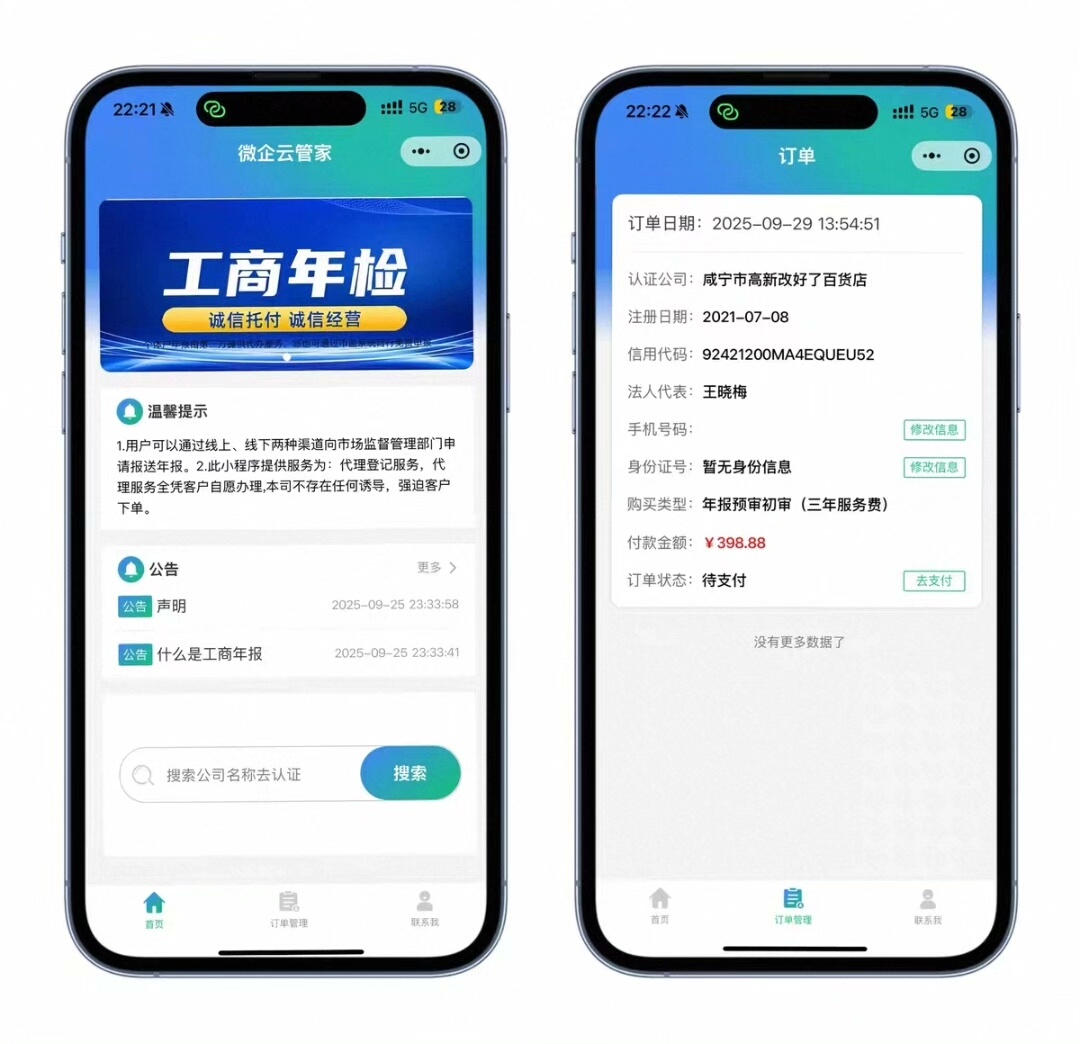 面向财税公司、工商代办机构,系统预置代理账号体系、客户档案管理、任务分派中心、服务进度看板及电子合同存证模块,显著提升年报代报业务标准化与交付效率。