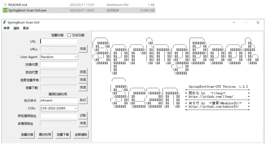 除原生命令行版本外,SpringBootScan-GUI提供简洁友好的可视化操作界面,支持一键导入URL、批量任务管理、扫描结果分类展示与导出功能,大幅降低安全测试门槛,适合初学者与渗透测试人员日常使用。