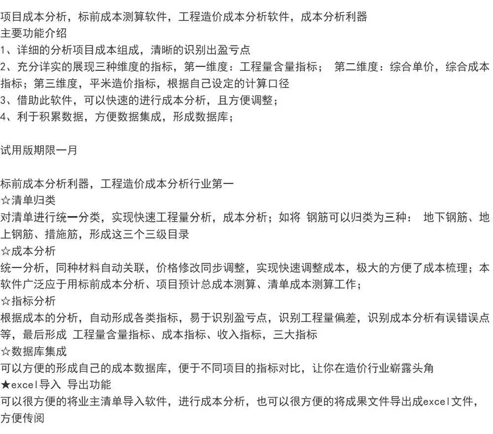 本款工程造价成本分析软件专为建筑行业量身打造,集成本建模、动态测算、多维比对于一体,是覆盖投标前期至施工全过程的成本管控核心工具。
