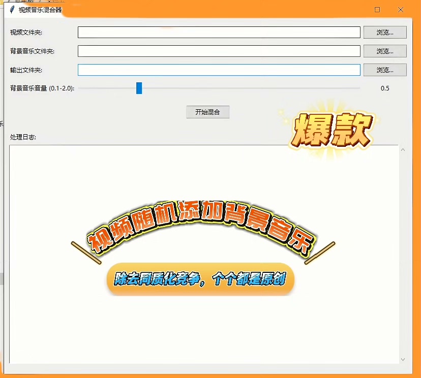 本工具专为内容创作者设计,支持一次性为800+视频文件自动添加专属背景音乐,大幅提升短视频、电商素材、课件视频等批量制作效率。