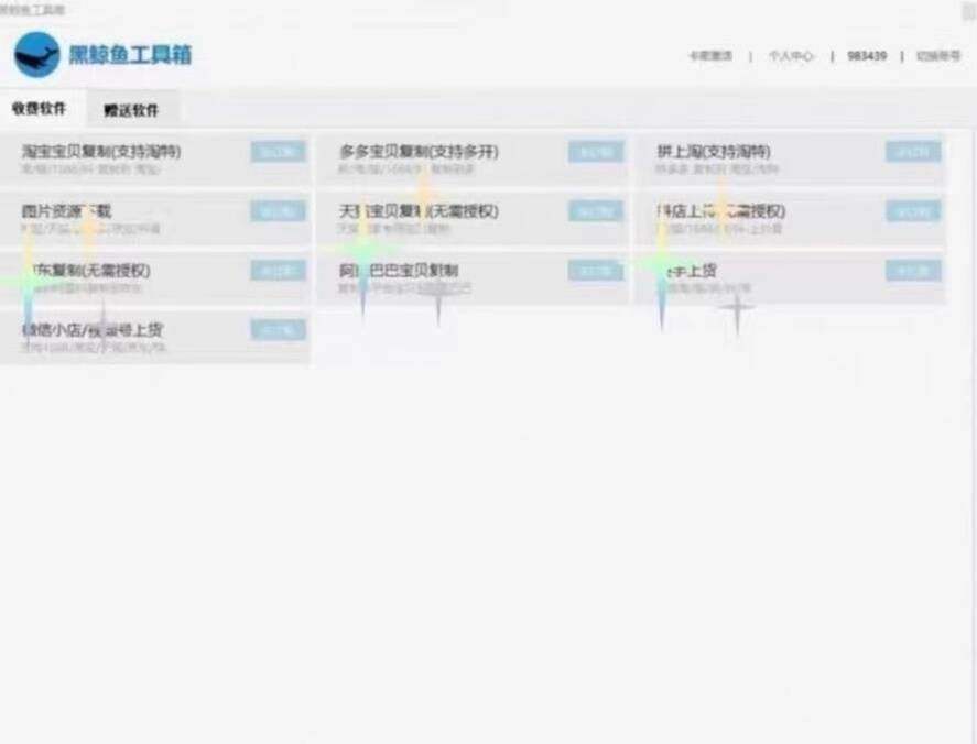 凡任一黑鲸鱼旗下复制类软件(如淘宝宝贝复制、拼多多同款搬运等),即可激活全部32款增值工具模块,涵盖标题优化、SKU生成、评论抓取、违禁词检测、监控等精细化运营场景。
