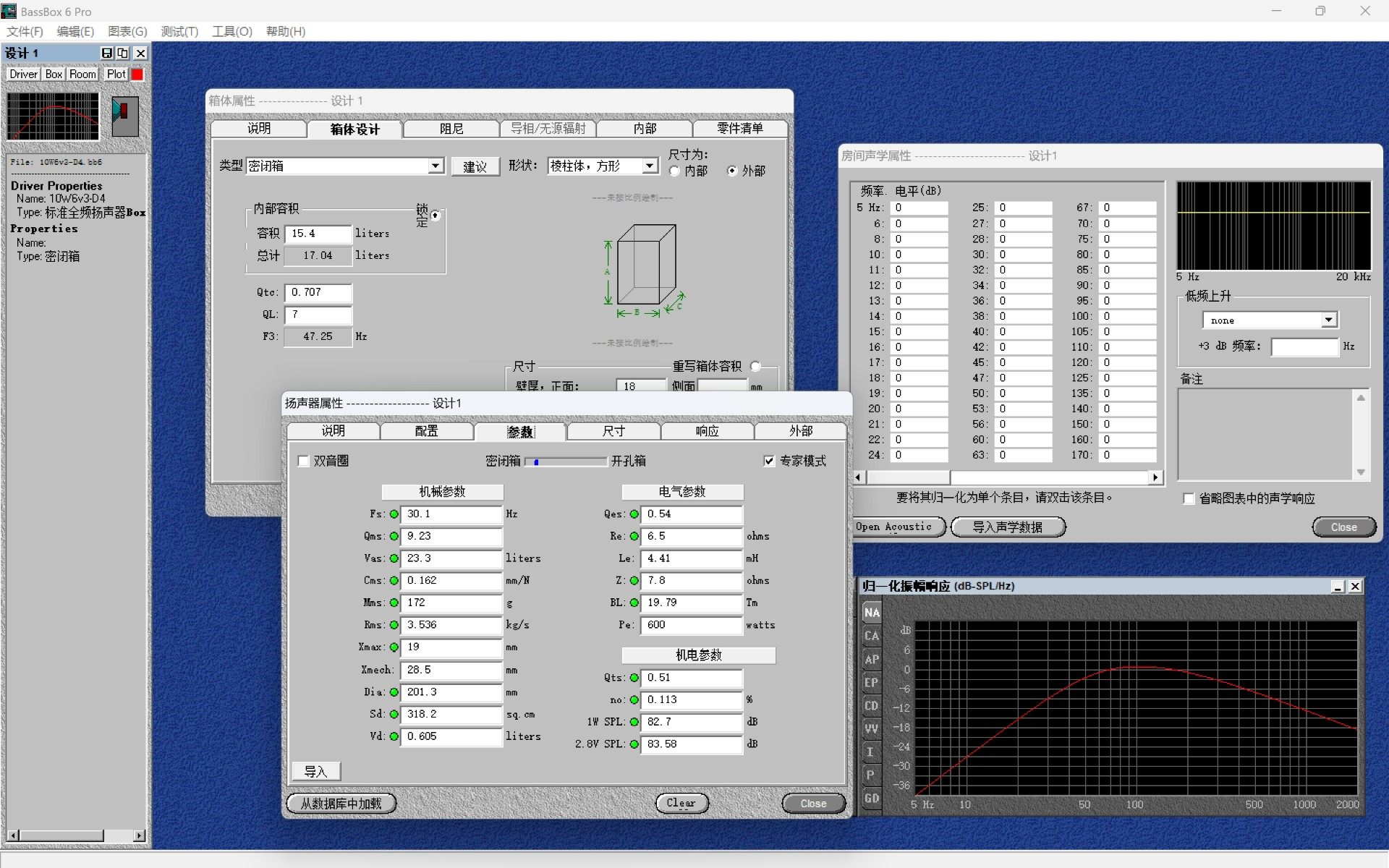 涵盖箱体容积计算、倒相管/传输线参数优化、扬声器单元特性建模、频响与阻抗曲线仿真等全流程功能,支持多单元组合分析与实时结果可视化,大幅提升设计效率与精准度。