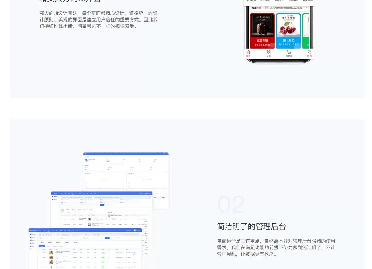 本系统基于LikeAdmin框架深度开发,底层采用ThinkPHP6.0 + PHP8.0高性能组合,数据库使用MySQL5.7,前端界面基于Vue和Element-UI实现,商家管理端与用户端均支持响应式布局。