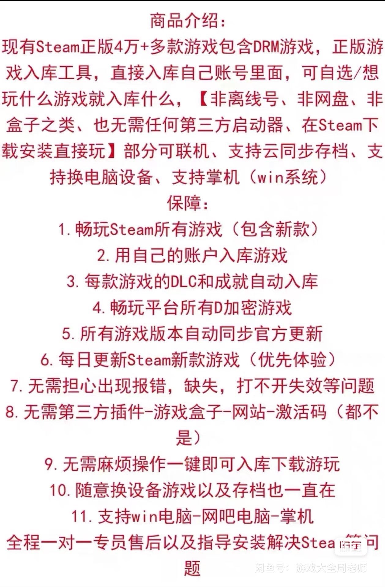1. 兼容Windows掌机与Xbox/PS手柄;2. 支持多设备切换与Steam创意工坊资源自动加载;3. 联机模式全程可用;4. 全量D加密游戏100%可入库运行;5. DLC内容与成就系统智能同步;6. 实时对接Steam官方更新通道;7. 零附加费用,无订阅、无内购;8. 三步完成:→输入兑换码→一键入库;9. 专属客服7×12小时人工指导;10. 真人发货,非网盘链接,安全可溯源;11. 持续日更维护,杜绝插件/广告/病毒;12. 新上架Steam游戏每日同步入库;13. 游戏直入您自有Steam账号库;14. 入库次数终身不限;15. 全库游戏统一入口,批量操作;16. 无隐藏收费项;17. 24小时在线答疑响应;18. 后期长期迭代升级;19. 安装后开箱即用;20. 兑换码为虚拟商品,激活后不支持退换。