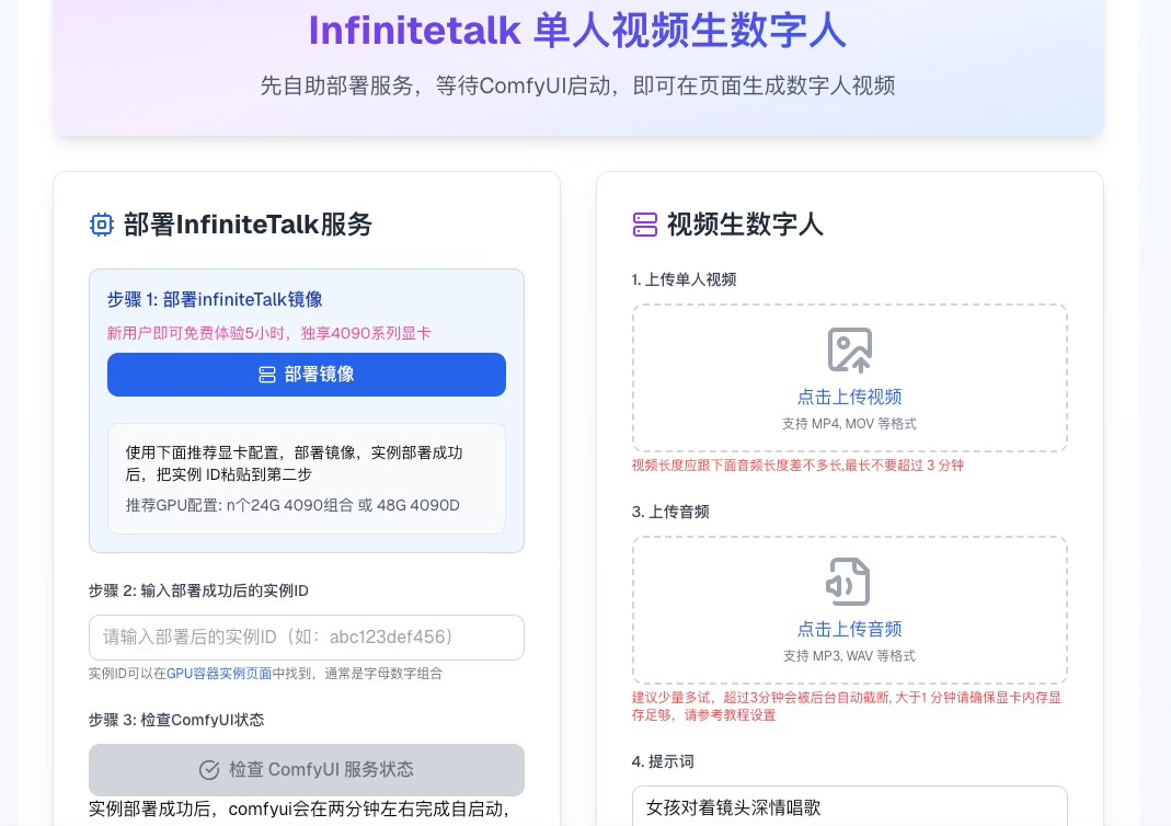 ### 为什么选择云端部署的InfiniteTalk AI数字人