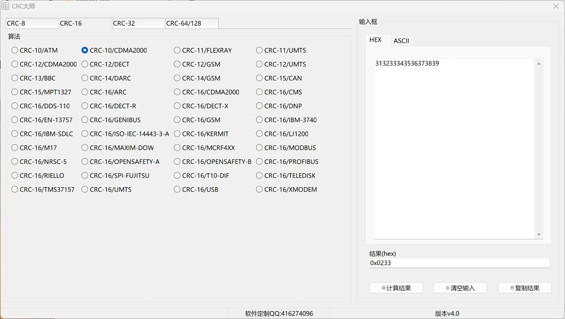 当前版本支持直接拖入或选择本地文件进行CRC值计算;同时提供文本输入模式,可自由切换ASCII明文或十六进制(Hex)格式输入,适配不同开发调试场景。