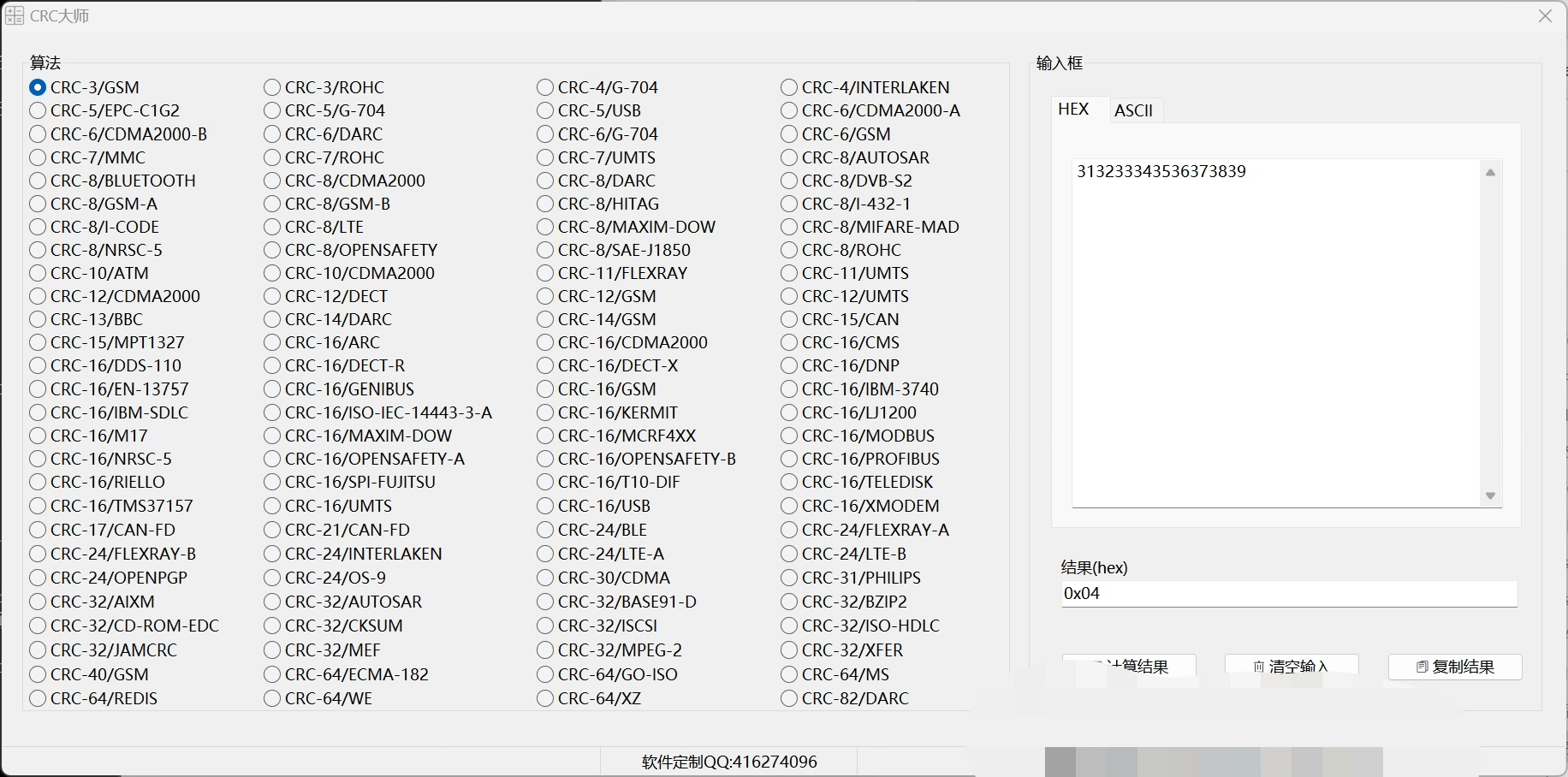 本工具深度集成超100种CRC校验算法,涵盖从轻量级的CRC4、CRC5、CRC6、CRC7、CRC8,到工业级常用的CRC16、CRC32,再到高精度场景所需的CRC40、CRC64、CRC82等,满足通信协议、固件校验、嵌入式开发等多样化需求。