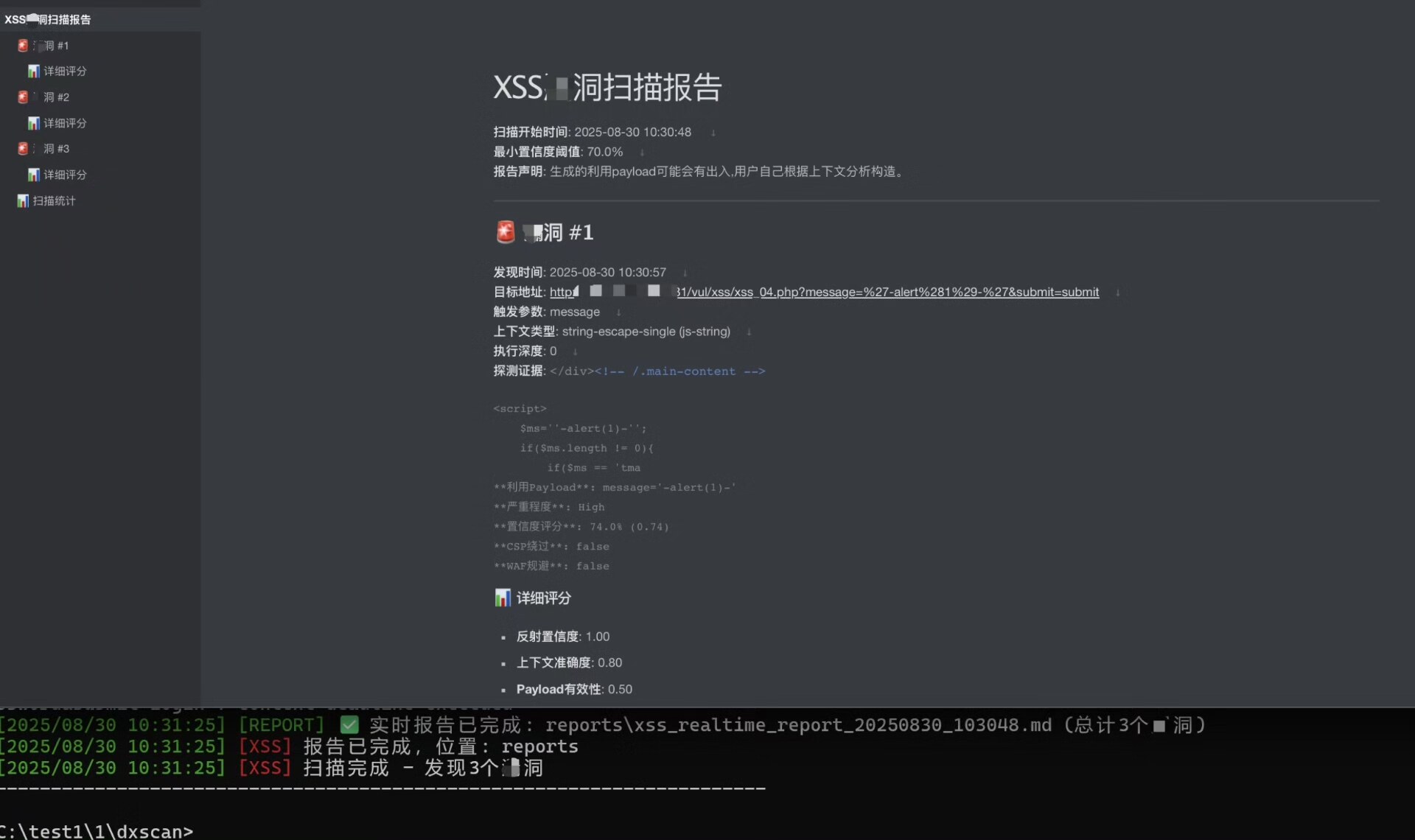 对初学者而言,工具提供清晰的中间过程日志(如爬取路径、触发点DOM节点、AST解析树片段),配合逐阶段结果展示,帮助用户从数据采集逻辑理解XSS成因,再到掌握漏洞利用边界,实现从‘看懂报告’到‘读懂代码’的能力进阶。