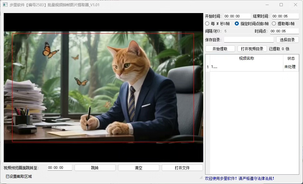 - **指定总数限制**:直接输入希望获得的总图像数目,系统将自动根据视频长度分配合适的间距。