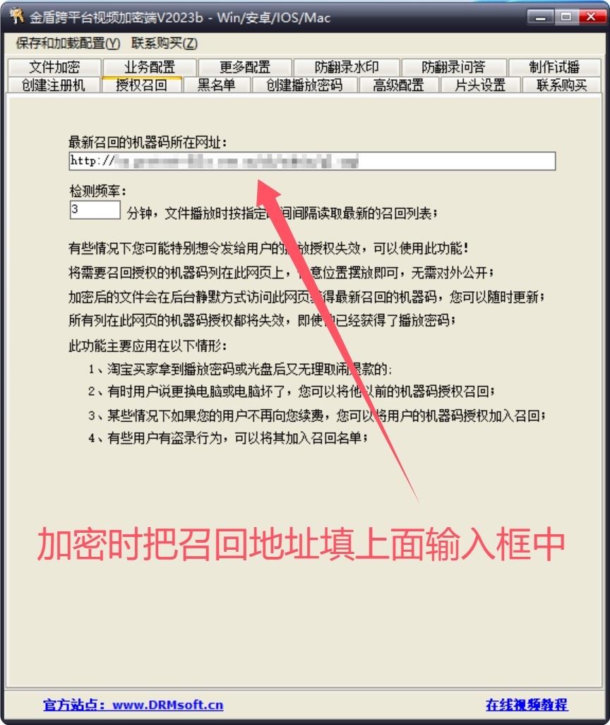 对于支持在线召回功能的所有加密端口,在进行加密处理前,请确保已将我们提供的召回链接正确配置于加密工具内。