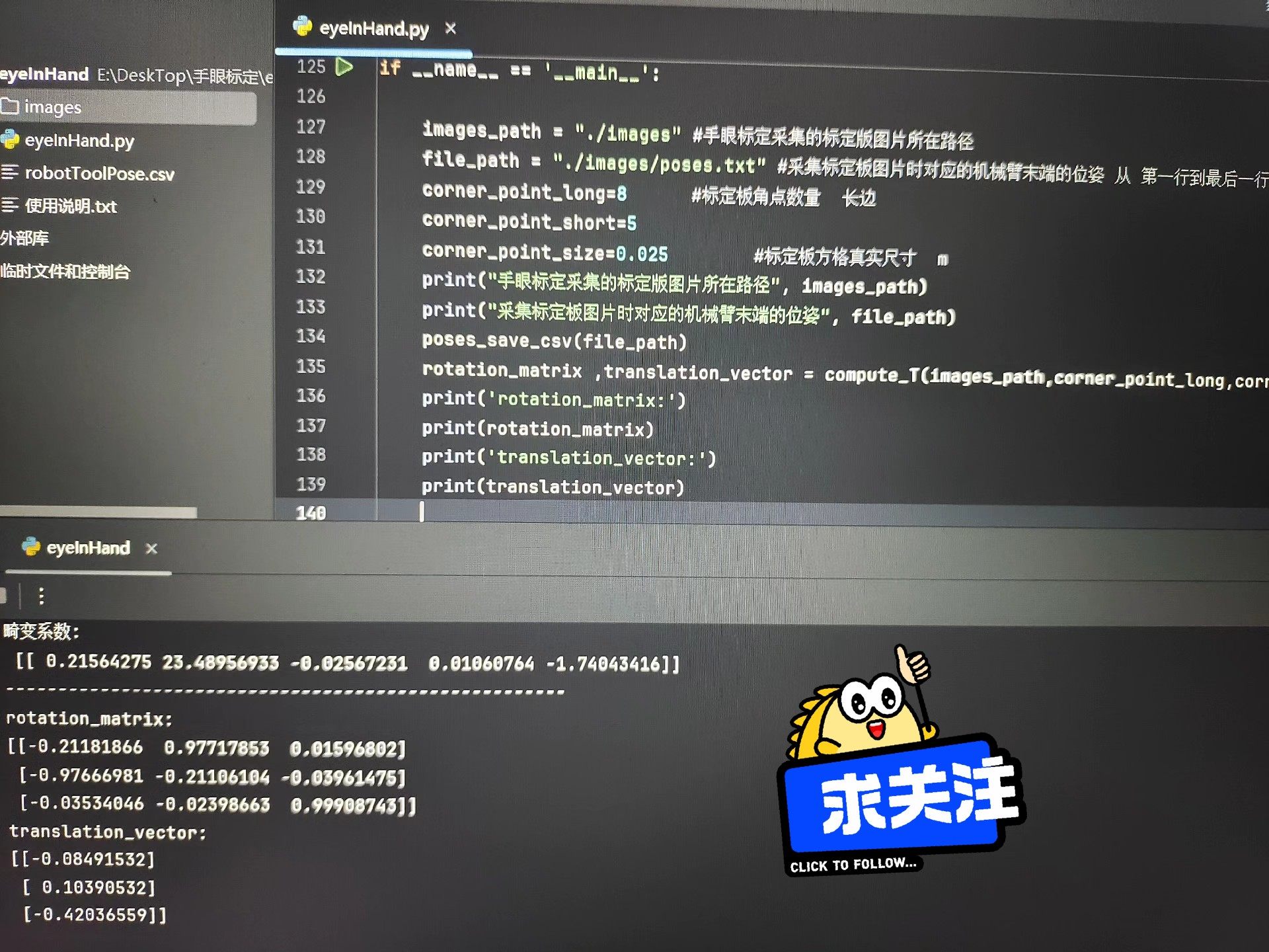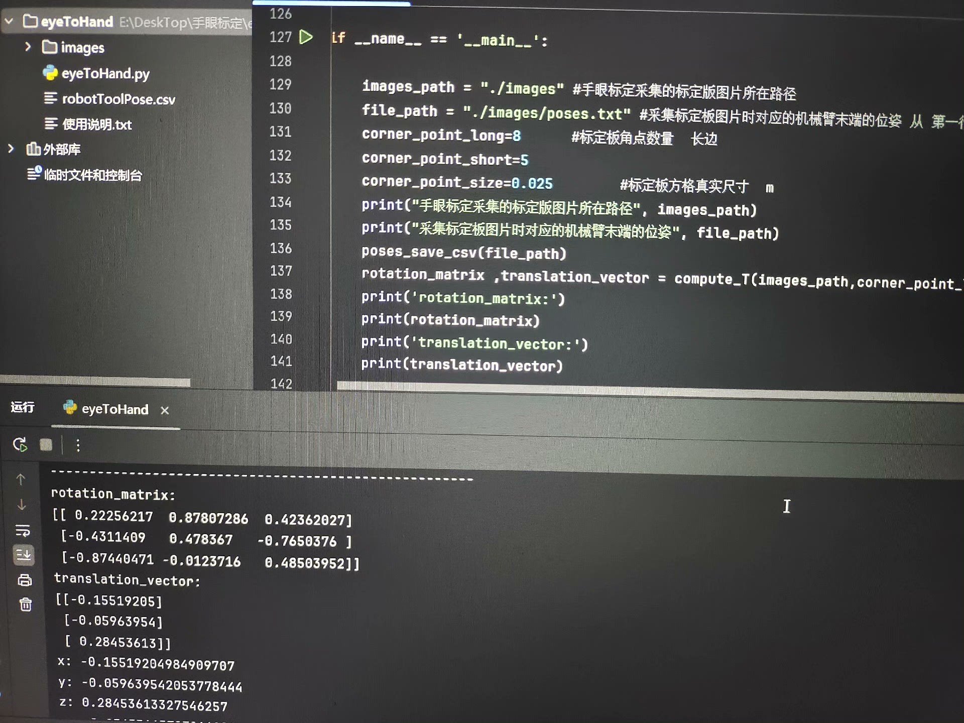 只需输入棋盘格图像并记录下机械臂末端执行器的位置信息即可完成整个过程。